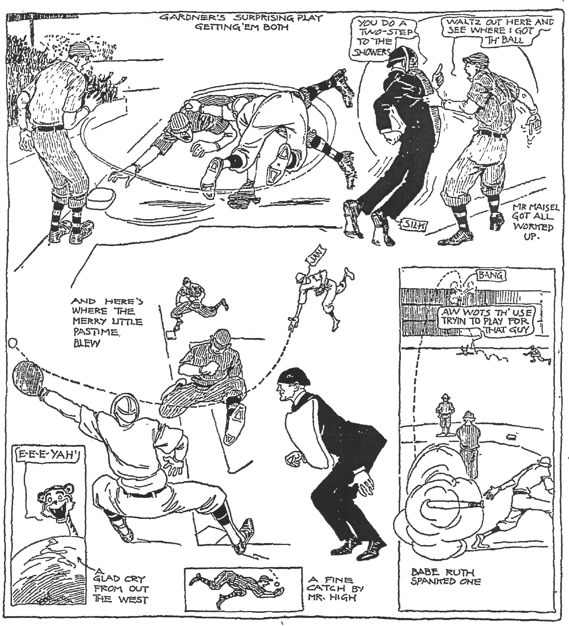 secondbaseman was late in getting to the bag. On the bright side Tris Speaker made two outstanding catches which would have allowed even more runs.