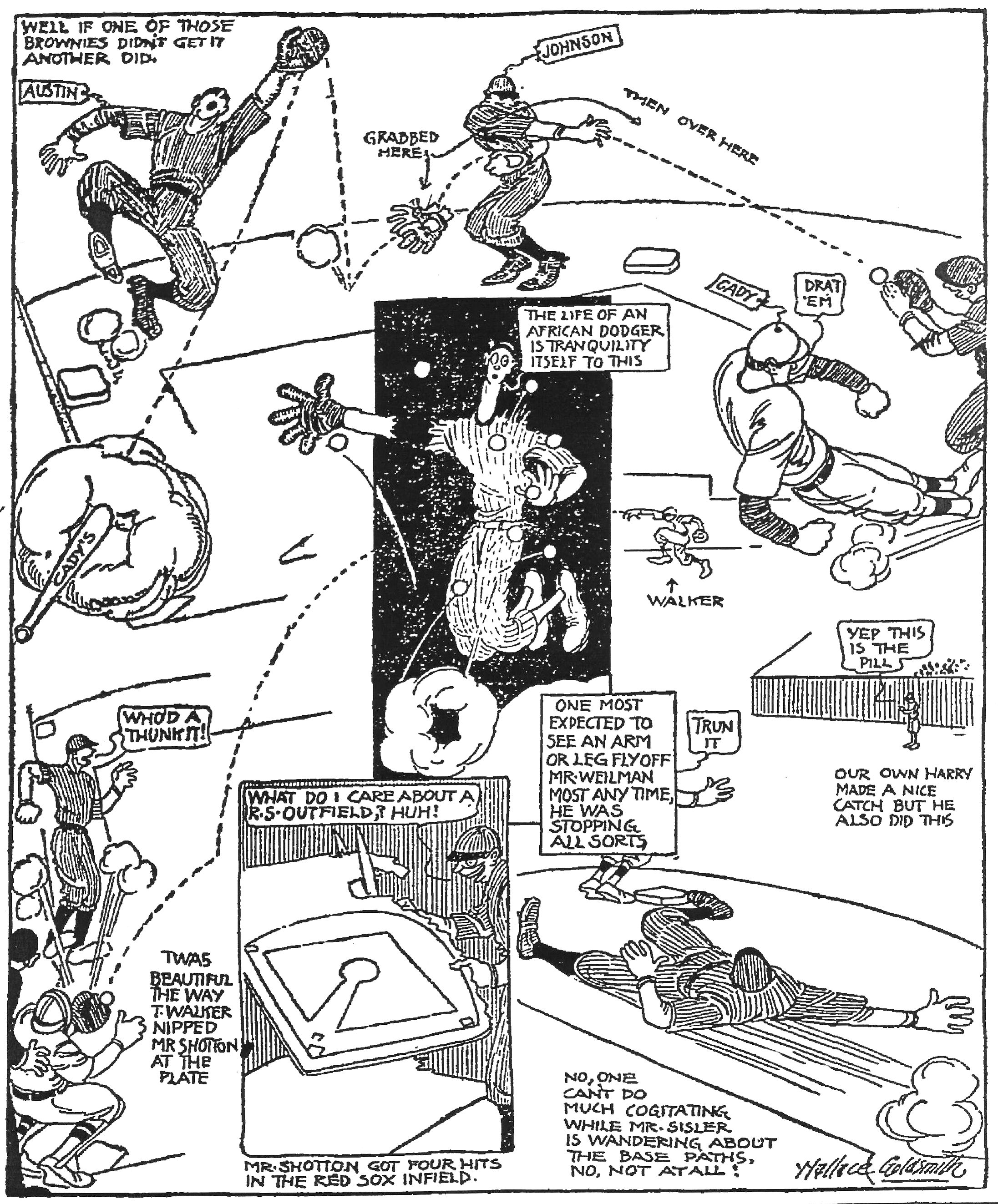 for Harry Hooper who was allowed to go from first to third in the ninth inning after the Brownies had locked up the game and let him go.