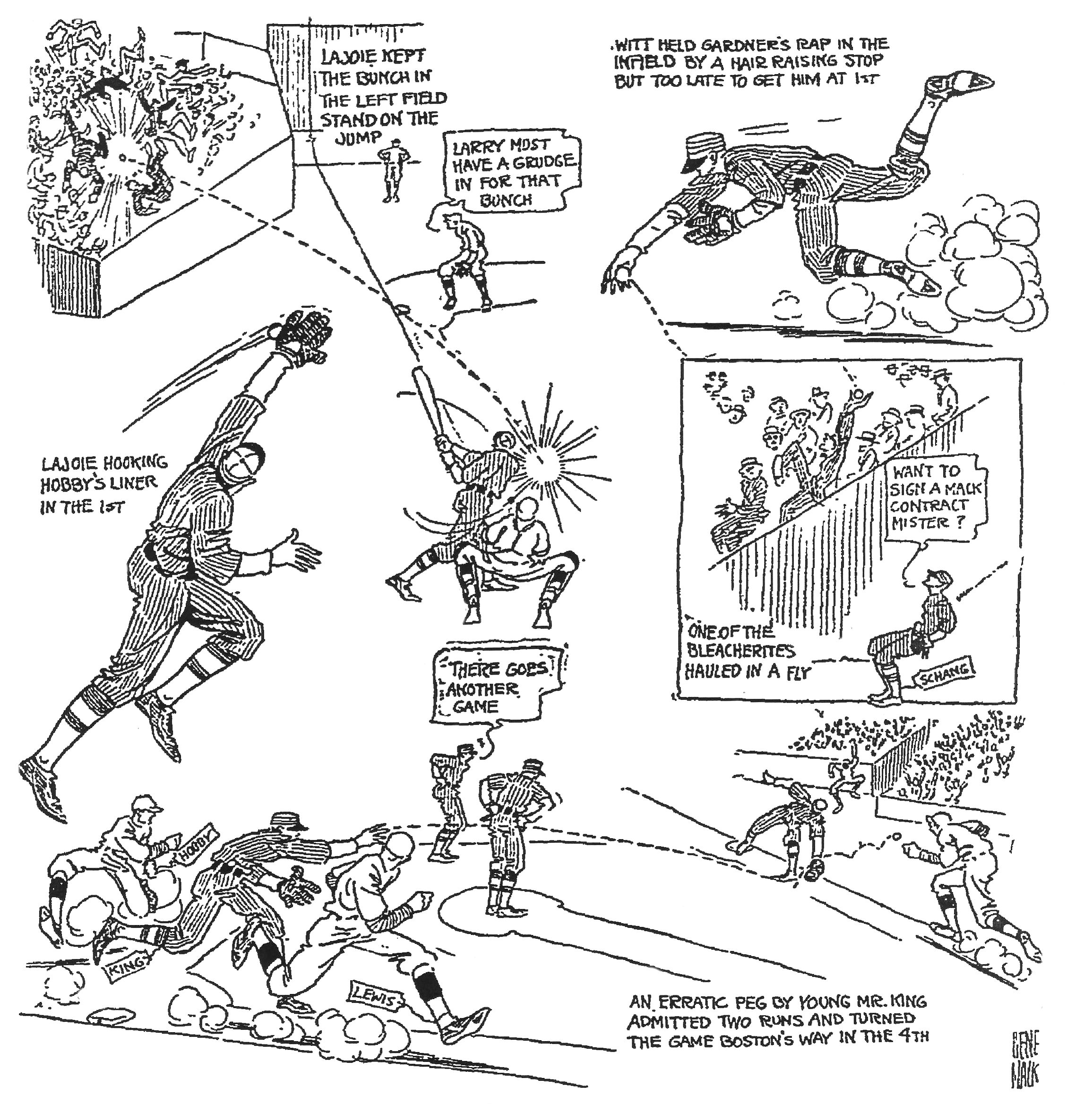 passed Duffy Lewis and Dick Hoblitzell, and then threw a wild pitch to start it off. Tilly Walker reached on a grounder that Lee King threw past Stuffy Mcinnis, allowing Lewis and Hobby to score while Walker ended up on third. He then came in on Gardner's single to right.