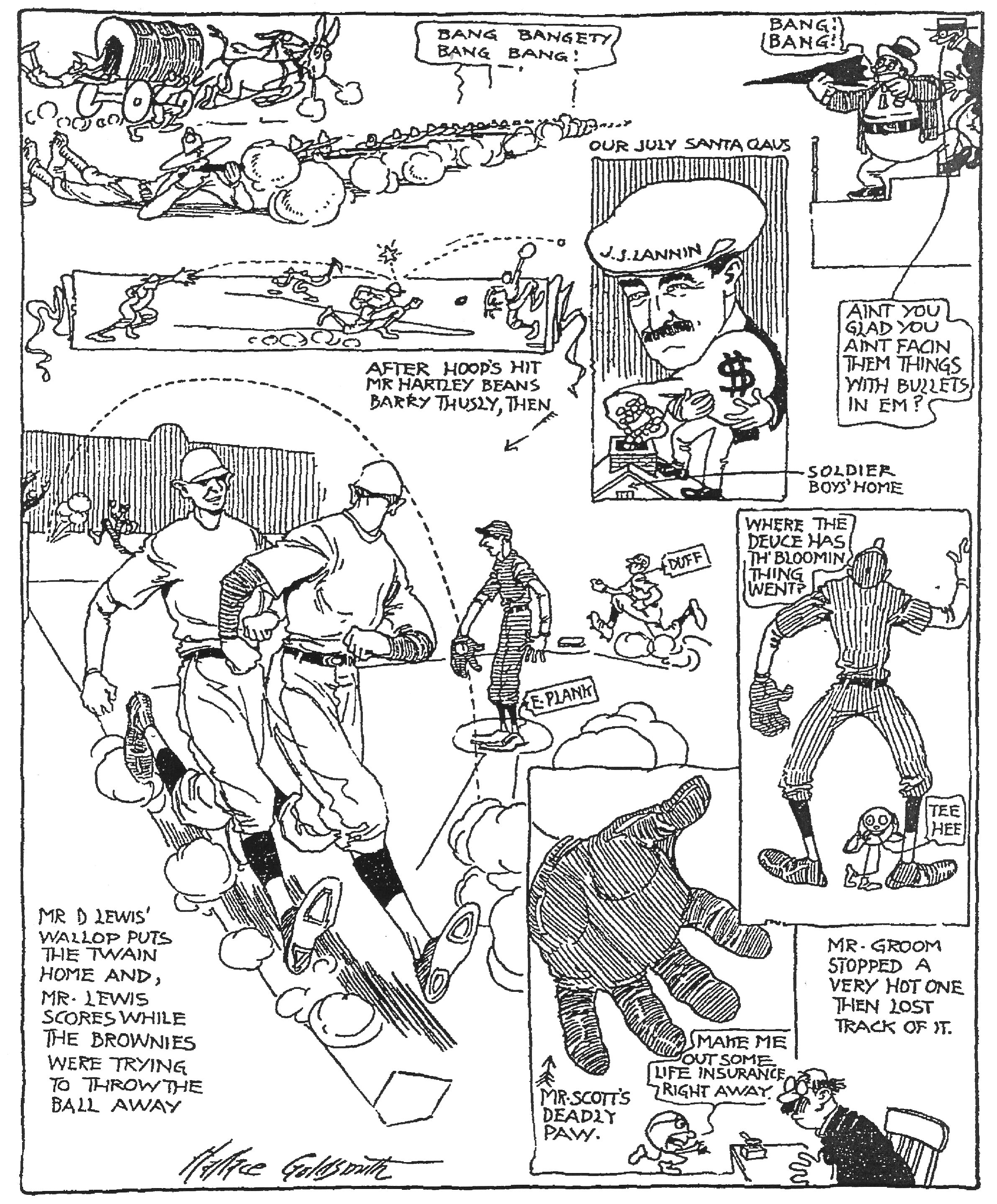 Hooper went across the field like a greyhound and pulled down a liner from George Sisler that was marked for three bases. Scott made two wonderful one-handed stops and got his man at first, and Hobby, in the ninth inning, on a wide throw from Larry Gardner,
