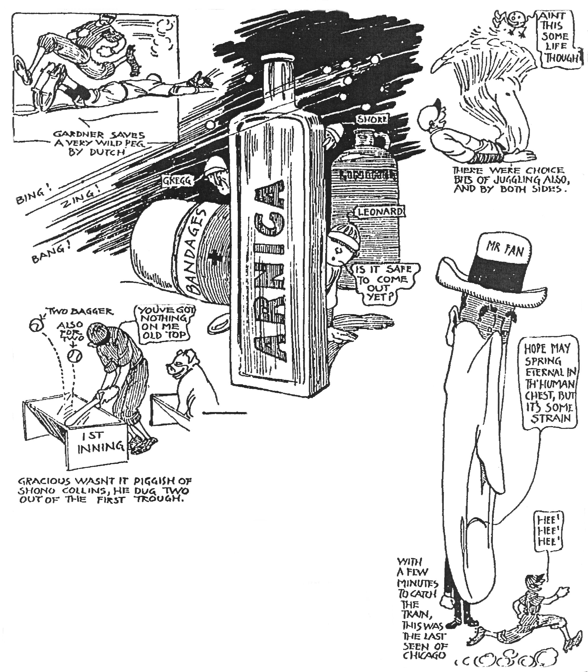 The White Sox clobbered the Red Sox at Fenway Park by a score of 11 to 6. The Chicago boys jumped all over Dutch Leonard in the first inning for six runs and never looked back. Before they finished they added five more, taking the final game of the