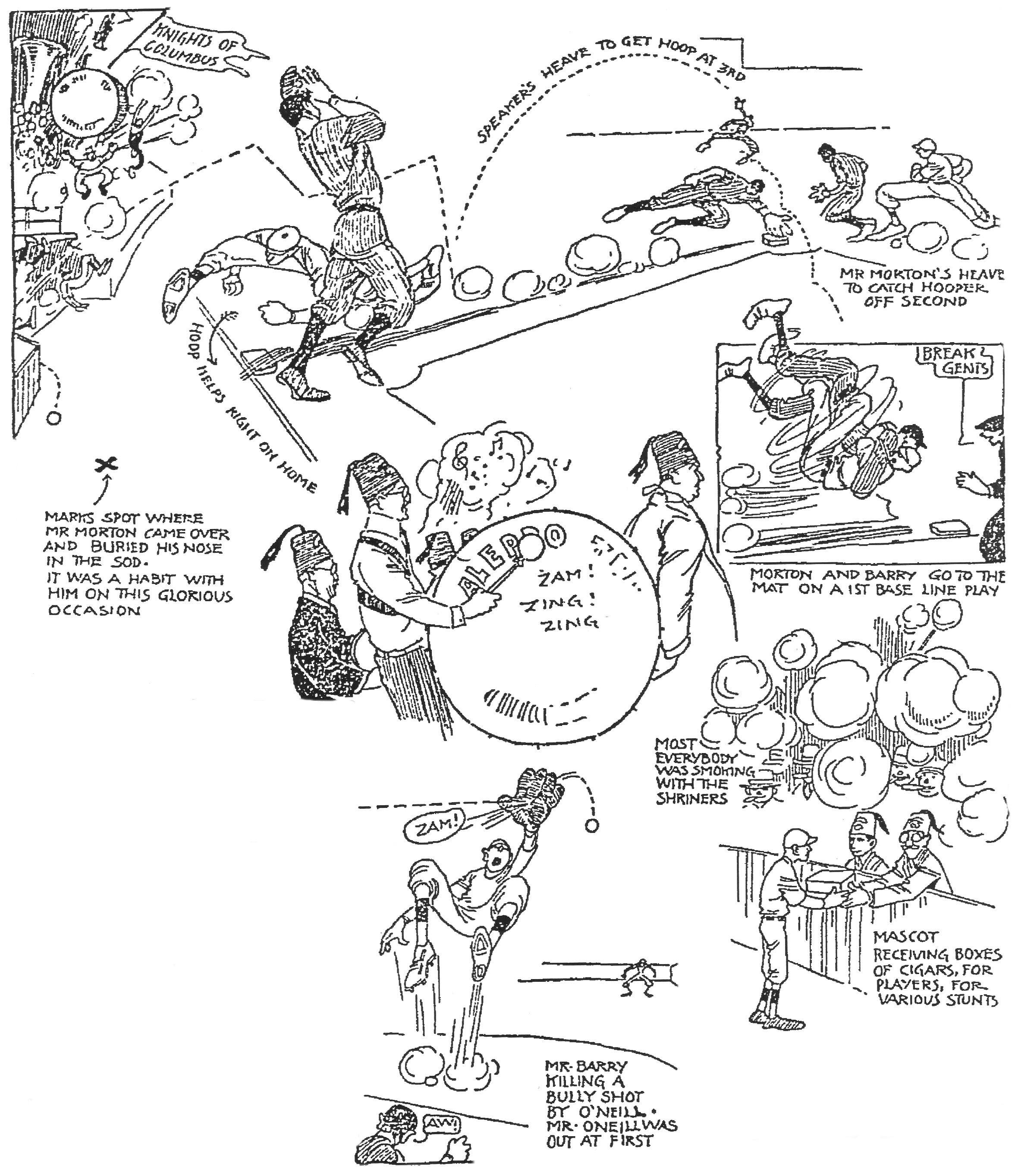 More than 9000 fans, including the Shriners and Knights of Columbus delegation were at Fenway Park to see the Red Sox beat the Indians 4 to 0. It was all Boston from start to finish, with Ernie Shore pitching airtight ball and the Red Sox playing great