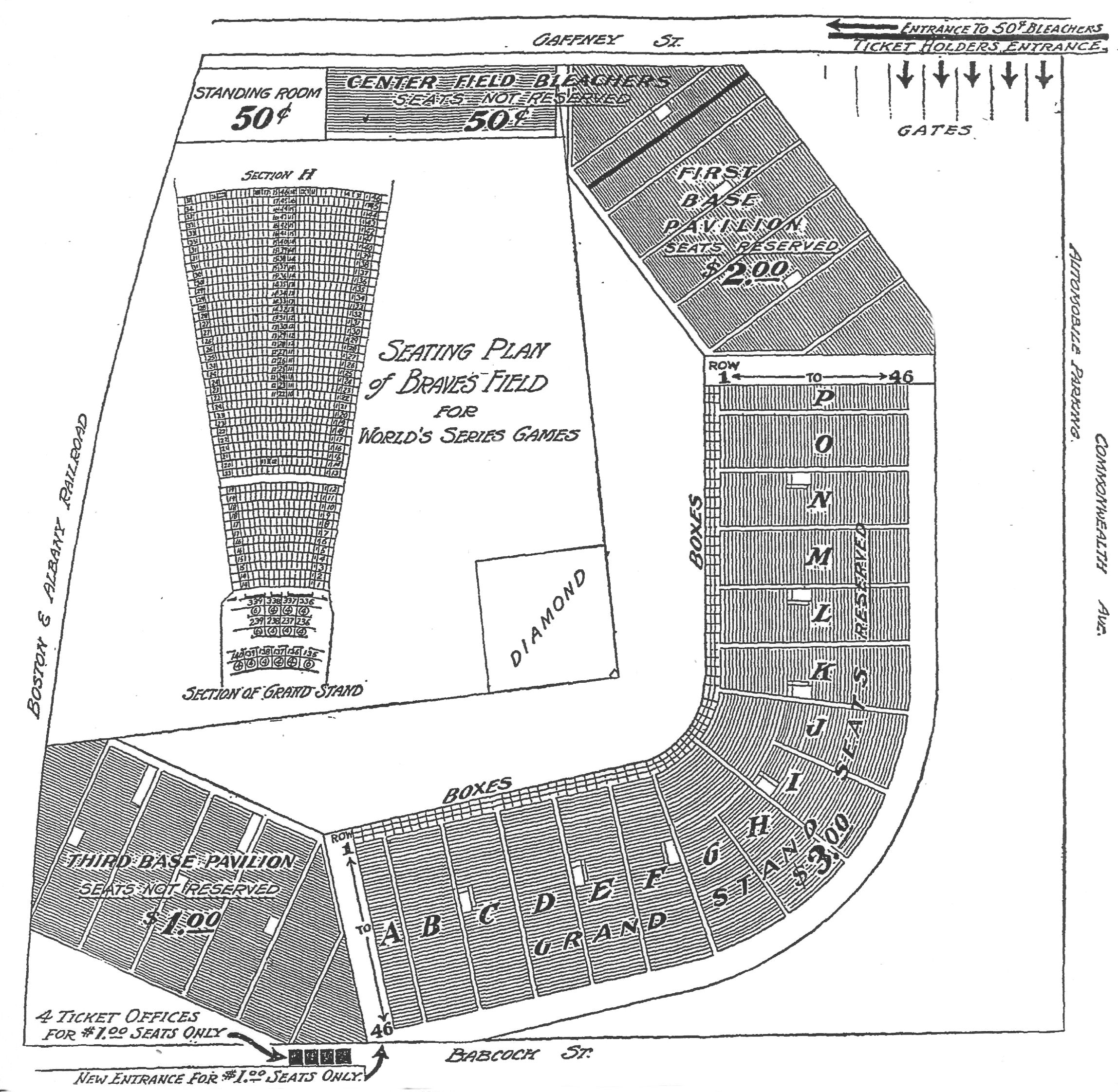 SERIES CHAMPS Babe Ruth was up to his old tricks. The boy from Baltimore loves to maul the baseball. He stood at the plate during batting practice and tried to hit the ball downtown. He once did hit the fence in far left field. The regulars stayed at the park from 2PM until 4PM. First there was batting practice with Sam Jones and the Babe doing the throwing. Afterward the fielders took their positions with Carrigan, Rube Foster and Dutch Leonard hitting the flies and grounders to them. In their own quiet way the Red Sox gauged the speed of the grounds and how the ball rolled. The Brooklyn team has not made any arrangements to practice at Braves Field. They arrive at the Hotel Brunswick this evening. When Louis Rounds, president of the borough of Brooklyn, leads his delegation of "Brooklyn Boosters" into Braves Field, the visiting delegation will find the Boston "Royal Rooters" ready to accord them a rousing welcome. The Royal Rooters Band has been practicing for many hours and will serenade the visiting fans in the home of their enemy. |