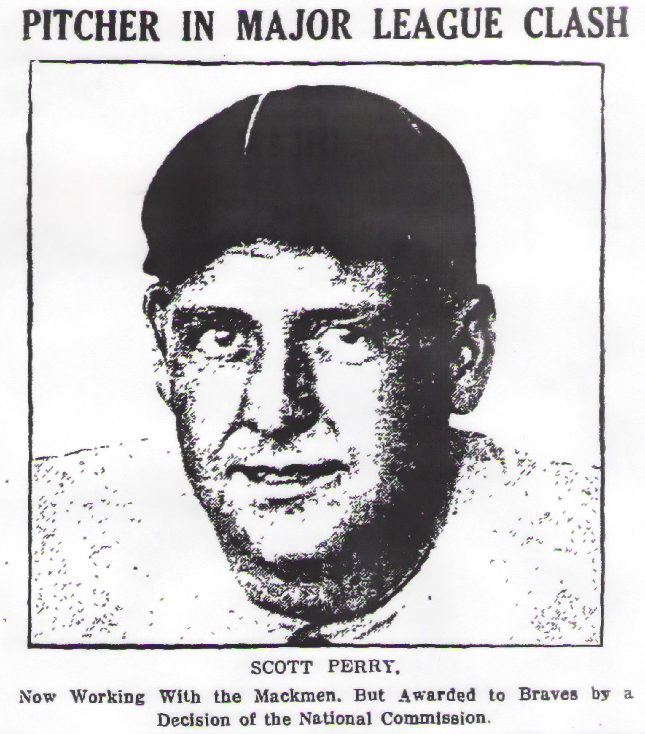 Harry Hooper's triple, Shean's single, Strunk's sacrifice, and a pass to Babe, followed by a triple from Stuffy McInnis, who smacked the ball to dead center field that crossed Walker up, gave the Sox their three runs in the sixth inning. Of course, everybody was interested in Scott Perry. Perry, who was playing for the Boston Braves earlier this year, was sold by them to Atlanta of the Southern League. When he refused to report, he was signed by Connie Mack. The Braves took the issue to the National Commission, who settles disputes between the two leagues. They ruled this week that Perry was still owned by the Braves. Connie Mack refused to abide by the ruling and the Athletics will take the case to the Common Pleas Court to ask for a legal injunction to stop the Braves from interfering with Perry. Up until this point all of the owners in both leagues have abided by the decisions on the National Commission, but now their authority will be challenged in civil court. |