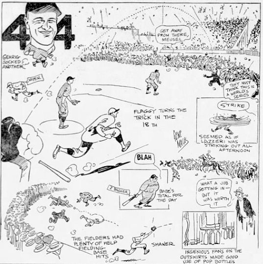 battle with the September 5, 1927 ... If Red Sox owner, Bob Quinn ever wanted a bigger ball park, he had that desire today. Fenway Park was too small to accommodate the throngs that besieged the gates, as thousands of fans had to be turned away, with the stands and bleachers filled to capacity, long before the first pitch was thrown. It started with a big parade to the field and it was clear that the presence of a good ball club, would enlist the support of the Boston fandom. The first game will long be remembered by the 34,000 fans who got through the gates. The Sox were ahead 3-0, then behind 4-3, then ahead 7-4, then 7-6 and then 8-6. In the ninth inning, the Yankees came through with two runs to knot the game at 8-8. Then the Bronx Bombers made three runs in the 17th inning, the Sox again knotted the score to send the game into the 18th frame. There, successive doubles sent into the crowd by Buddy Myer and Ira Flagstead put the Sox into the win column, 12 to 11. The fact that the Red Sox were shut out in the second game, 5-0, when the game was called after five innings, did not matter to this crowd. The Red Sox jumped out to a 3-0 lead in the first inning on a walk to Flaggy, a double to left-center by Jack Tobin and a single by Wally Shaner. The Yanks came up with four runs in the third, paced by Lou Gehrig's 44th homer, that tied him with Babe Ruth in the home run race. Two walks and two doubles put the Yanks up 6-3 in the top of the fourth. But the Sox stormed right back in their half. Shaner led with a double and was brought home on Todt's base hit. Fred Hoffman followed with another single and Red Ruffing loaded the bases when he beat out a sacrifice bunt. Yankees pitcher, George Pipgras walked both Jack Rothrock and Buddy Myer, to hand the Sox two runs. Bill Regan's ground out brought in another run and the Red Sox had grabbed the lead, 7 to 6. Two singles and a walk loaded the bases for the Red Sox again in the fifth and Ruffing's grounder scored another run, making the score 8 to 6. They kept the lead until the ninth inning when Ruffing walked a batter and gave up doubles to Ben Paschal and Earle Combs, sending the contest into overtime, tied at eight each. Both Ruffing and Wilcy Moore kept their opponents in check until the 15th inning, when Ruffing tired and gave way to Hal Wiltse. Two innings later Wiltse gave up three runs and the Yankees took what seemed, a commanding 11-8 lead. But the Sox didn't give in. Bill Regan doubled into the crowd and was brought home on Tobin's base hit. Waite Hoyt took the mound for the Yankees and gave up another double to Shaner. Todt grounded out, but that scored Tobin, and moved Shaner to third. Bill Moore laced a clutch double down the right field line and the game was once again tied, 11-11. Wiltse walked Tony Lazzeri in the 18th inning, but Moore erased him on an attempted steal and that set up the back-to-back doubles by Myer and Flagstead that happily ended an exciting Fenway battle. |