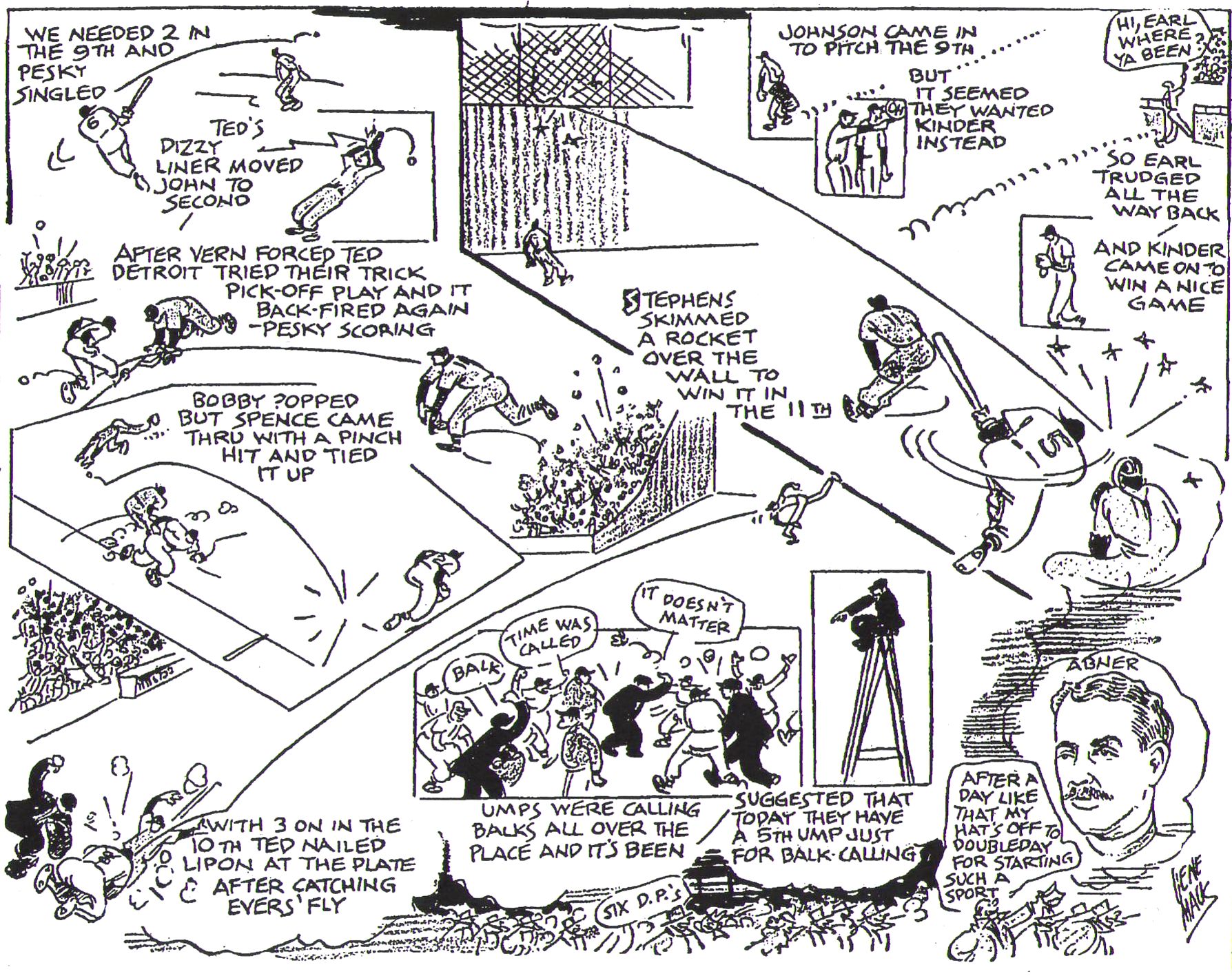 from Hoot Evers and doubling up Johnny Lipon, trying to score from third, at the