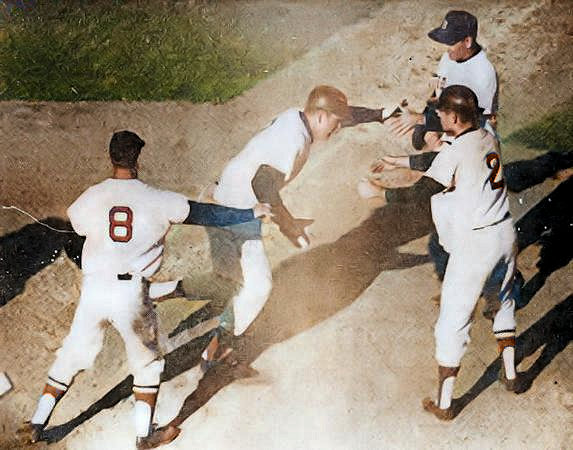 tying run. Yaz, racing around from first, tried to end the game and