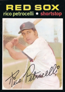 Rico's homer wins the game in the 13th inning July 15, 1971 ... Rico Petrocelli homered in the 13th inning for a 3 to 0 win over the Minnesota Twins, in a game notable are several reasons. Luis Tiant pitched his finest game for the Red Sox and Jim Perry of the Twins had a bid for a no-hitter. And Bill Lee racked up his eighth win in relief. Twins reliever Stan Williams was pitching very well with two outs, none on, in the bottom of the 13th. But he walked Reggie Smith and when Reggie broke to steal second, Williams threw a pitch all the way to the backstop. That made it 2-2 on Carl Yastrzemski and while Yaz may be booed and in a slump, he is Yaz and Williams walked him. Williams then went to work on Petrocelli, whom he had struck out in the 11th inning, while working out of a bases-loaded and one-out situation. He got two strikes on Rico and then wasted a pitch, which Rico drove foul over the roof. But the next pitch was in the same place, right near his chin and in the middle of the plate. Petrocelli blasted it midway up into the net in left-center. It was his 15th home run of the season and his fourth game-winning RBI homer, that tied him with Harmon Killebrew for the RBI lead at 60. Yastrzemski and Billy Conigliaro both got solid courses of boos, and they increased for Yaz who went 0 for 4, as his hitting problems continue. Conigliaro had a single which was only one of five hits the Red Sox managed all night. Tiant was superb in pitching 10 innings and striking out nine. But in the second inning he had the bases loaded with none out. So he flicked his head around, threw a few fakes, a double pump, and then struck out George Mitterwald and Perry before getting Steve Braun to pop up. He also got out of trouble in the third, with men on first and second and one out. But he was at his finest in the 10th inning. With one out, Rod Carew reached out and sliced a drive to left. Yaz leaped against the wall, missed, and while the ball rolled toward the infield, Carew raced around to third with a triple. But Leo Cardenas fouled off three, 3-2 pitches and then struck out. Tiant next fanned Graig Nettles and retired for the night. He had thrown 154 pitches, so manager Eddie Kasko decided to bat Joe Lahoud for him. Jim Perry had a no-hitter until Luis Aparicio hit a clean single to center in the sixth inning. In the 10 innings, Perry allowed just three hits, escaping only one serious problem in the eighth. Duane Josephson doubled off the wall with two outs in the eighth, and then Perry and Aparicio were going at it. The count was 3-2, and Aparicio hit a pop foul which Braun dropped. An error by the rookie had given the Sox a 1-0 lead earlier in the game, but Perry bored down and Aparicio popped a fly ball to left. Tom Hall followed Perry into the game and loaded the bases in the 11th inning, before Williams came on to strikeout Petrocelli and get Scott to pop out to the catcher. Bill Lee, who must be baseball's only middle reliever with an 8-2 record,