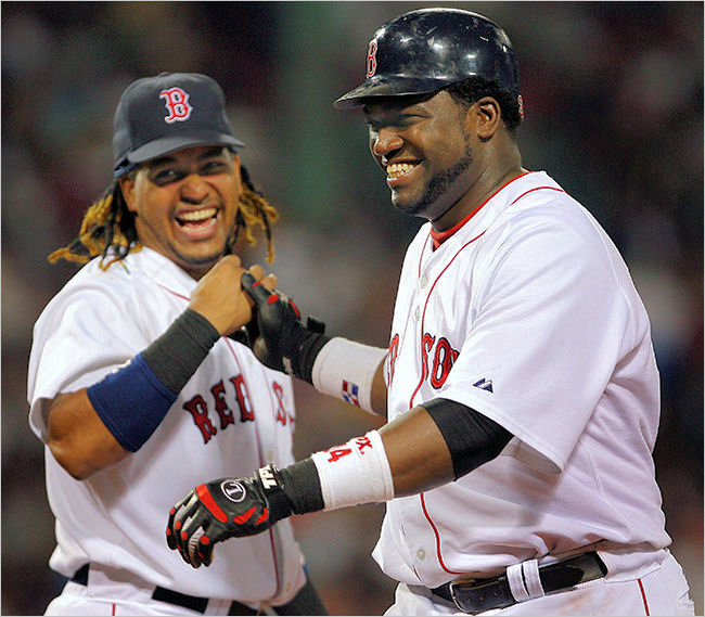 THE "IDIOTS" REVERSE THE CURSE June 11, 2004 ... David Ortiz gave the Red Sox a 1-0 lead with a seventh-inning home run, then singled home Johnny Damon with the winning run in the ninth in a 2-1 game before 35,173 at Fenway Park. Ortiz bailed out Manny Ramirez, whose two-out defensive miscue on pinch hitter Olmedo Saenz's wind-blown fly to left in the top of the ninth allowed Alex Cora to score all the way from first, ruining Keith Foulke's bid for his 13th save. With the win in hand, Ortiz and Ramirez could afford to laugh about the misplay. Foulke (2-0) got the win, leaving Derek Lowe with a no-decision despite pitching seven shutout innings. Damon, who walked in the ninth and advanced to third when Mark Bellhorn extended his hitting streak to 10 games with a double to the corner in left. Earlier, Ortiz, 7 for 9 in his last two games, delivered a solo shot off Dodgers starter Odalis Perez, who was superb, over the right-field fence for his 13th home run. Lowe completed seven innings for the first time since April 29th, a 7-3 win over Tampa Bay. He did not experience the nasty blister problems that had hindered him in his last two starts. But he did encounter a few control problems, especially in the third when he walked two and allowed a single to Dave Roberts, loading the bases with two outs. Reese, starting in place of Nomar Garciaparra, who got the night off after playing two straight days, received an ovation as he ran off the field to chants of "Pokey! Pokey!" As expected, Scott Williamson was activated prior to last night's game and first baseman/third baseman/catcher Andy Dominique was optioned to Triple A Pawtucket. Williamson was placed on the 15-day disabled list with right elbow inflammation May 21. He has a 1.69 ERA (three earned runs in 16 innings) in 14 appearances. Manager Terry Francona said Williamson will take his normal spot as one of the team's setup men. Bill Mueller, who was placed on the 15-day disabled list May 25 with right knee inflammation, is expected to meet up with the team in San Francisco next week to begin hitting. Mueller is expected to return to the lineup near the All-Star break. Trot Nixon went 1 for 3 with an RBI in his second rehab start in Pawtucket last night. Brian Daubach also had an RBI single in the PawSox' 5-2 loss to Durham. Nixon stroked his RBI single in the second inning and also walked in the fourth. He fielded only one ball in the outfield . |