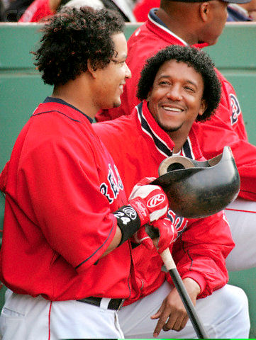 THE "IDIOTS" REVERSE THE CURSE October 6, 2004 ... The Red Sox stunned the Angels, 8-3, before 45,118 on Gene Autry Way to seize a 2-0 lead in the best-of-five Division Series. Manny Ramirez struck the decisive blow when he launched a sacrifice fly with one out in the seventh inning amid a 3-3 stalemate to drive in Damon with the go-ahead run. The Sox waged the pivotal rally against Anaheim's bullpen dynamo, Francisco Rodriguez, who chipped in by wild-pitching Damon to third after Damon bounced into a fielder's choice and stole second. Then the Sox broke the game open with four runs in the ninth, with Trot Nixon's RBI single and Cabrera's three-run double the big hits. As for Martinez, he made plenty of his own magic by working seven strong innings to lead the Sox to the threshold of their second straight berth in the American League Championship Series. Firing 116 pitches, one shy of his season high, and regularly hitting 94 to 96 miles per hour on the radar gun, Martinez rationed the Halos three runs on six hits, two walks, and a hit batsman for his first postseason win since he helped clinch the Division Series in Game 5 last year against the A's. Ramirez also drove in the first Sox run by drawing a bases-loaded walk in the second inning off Anaheim starter Bartolo Colon, and Jason Varitek delivered a crucial, two-run homer off Colon in the sixth inning to erase a 3-1 deficit. While Martinez improved to 10-1 in 14 career starts against the Angels, the Sox seized a 2-0 lead in a postseason series for only the fourth time in franchise history. They also did so en route to winning the 1916 World Series and 1975 ALCS, and on the way to losing the 1986 World Series. |