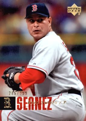 June 18, 2006 ... Rudy Seanez whose first pitch last night was belted into the left-field seats for a three-run home run by Jeff Francoeur, one swing erasing the one-run lead Curt Schilling had nursed through six innings, was the winning pitcher tonight at Turner Field. Seanez who entered in the Braves' seventh, gave up the home run to Francoeur, then retired Adam LaRoche on a grounder to first was the pitcher of record when the Sox batted around in the eighth, scoring six times en route to a 10-7 win. But even though Seanez was given credit for a job that was anything but well done, it does not obscure the continuing travails of the Sox bullpen, on a night that even the dependable Mike Timlin labored (2 R, 4 H, 2/3 IP) before the Braves were subdued. Only the resilience of a Sox Jonathan Papelbon again provided the bailout, entering with two on and two out in the eighth and retiring Brian McCann on a first-pitch fly ball, then working a scoreless ninth for his 23d save, one shy of Dick Radatz's rookie team record set in 1962. In the last 10 games, the Sox bullpen has allowed 28 earned runs in 32 innings, which translates to a 7.87 ERA. Included in that carnage, of course, is the 12th-inning grand slam struck by Jason Kubel off Julian Tavarez in Minnesota last Tuesday night, when Schilling also pitched well and came away with a no-decision. Seanez actually had pitched better of late, allowing just two earned runs in his last 17 1/3 innings. After yesterday's home run by Francoeur, Seanez has allowed 7 of 11 inherited runners to score. One of those base runners came courtesy of Manny Delcarmen, who replaced Schilling at the start of the seventh, struck out Edgar Renteria, then watched as Trot Nixon made a terrific, belly-flopping catch of Scott Thorman's sinking liner. But with two out and nobody on, Delcarmen gave up a line single by Andruw Jones. Terry Francona went to the new lefthander, Javier Lopez, who walked McCann, bringing Francona out of the dugout and Seanez into the game. Curt Schilling's single improved Sox pitchers to 5 for 15 (.333) with a homer and three RBIs this year . |