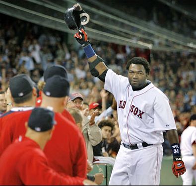 September 21, 2006 ... David Ortiz, in his first at-bat, did some mythmaking of his own, hitting his 51st home run of the season, breaking the club record set in 1938 by Jimmie Foxx, a Hall of Famer. Boston's designated hitter added his own coda to this historic night by hitting another home run, No. 52, in his last at-bat during a 6-0 Boston victory over the Minnesota Twins before a crowd of 36,434. With nine games to play, Ortiz is a distant nine home runs from the AL record of 61 set in 1961 by Roger Maris, a record that has been eclipsed in the steroid era in the National League by Sammy Sosa (three times), Mark McGwire (twice), and Barry Bonds, who in 2001 hit 73, the current record. Ortiz swung his 34 1/2-inch, 33-ounce bat the same bat carved of white ash and laminated black that he'd used the night before to hit No. 50 at the first pitch he saw from Twins lefthander Johan Santana, with two outs and nobody on base in the bottom of the first inning. The pitch from Santana, widely considered the best pitcher in the American League and a "brother" by Ortiz, was a belt-high fastball that did not veer inside enough to interrupt the full violent twist of Ortiz's hips and the upward sweep of his bat. At the sound of bat meeting ball, and the sight of the ball soaring high into the cool autumn-like night, Ortiz's teammates rushed to the railing of the dugout, and the crowd rose as one, exploding when the ball cleared the Sox bullpen. With that swing, Big Papi, trumping Double X, whose record had stood the test of other Sox sluggers, from Ted Williams to Yaz, Jim Rice to Mo Vaughn, for 68 years.