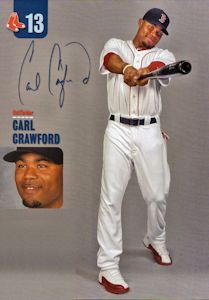 A SEASON IN THE DRINK May 9, 2011 ... For the second time in nine days, Carl Crawford delivered a game-winning hit, slamming a double off the wall in the bottom of the 11th inning to lift the Sox to a 2-1 victory against the Minnesota Twins. Jed Lowrie drew a one-out walk off Jim Hoey (0-1) in the 11th. Rookie Jose Iglesias, who was called up from the minors Sunday, pinch ran. Crawford, an aggressive hitter, worked the count full before taking a swing at a low fastball. He drove the ball through a stiff wind that was blowing in. As the ball banged high off the wall in left-center, Iglesias paused for a second and then took off. The Twins quickly got the ball, shortstop Matt Tolbert taking the relay throw and getting it to the plate. But Iglesias slid in before catcher Rene Rivera could apply the tag. Crawford hit .155 in April, laboring under the expectations that come with a seven-year, $142 million contract with a new team. But he has been one of the more valuable players on the roster this month, hitting safely in all nine games at 13 of 36 (.361). Hideki Okajima (1-0) got the victory with two innings of relief. He left two runners stranded in the top of the 10th and two more in the 11th. He threw 43 pitches, his career high. With Matt Albers and Daniel Bard unavailable, Okajima was called on to carry a heavy load. The Sox finished a 6-5 homestand with three consecutive wins and at 17-18 again have crawled back to within a game of .500. Sox starter Josh Beckett was taken out after seven shutout innings and 103 pitches. Francona called on Alfredo Aceves to protect a 1-0 lead. He got one out before Denard Span reached on an infield single, tapping the ball toward third base and beating the throw from Kevin Youkilis. Aceves than balked Span to second base, first-base umpire Angel Hernandez making the call. It was the second balk called on Aceves in as many appearances and it proved to be a crucial mistake. Aceves got Tolbert to foul to third. Francona went to Jonathan Papelbon. It was his first save opportunity since April 22. The closer got ahead of Jason Kubel, 0 and 2, but could not put him away. Kubel took two balls, fouled off three pitches, and then looped a splitter into center field for an RBI single. It was Papelbon's first blown save in six chances. He came back in the ninth and retired the Twins in order. Beckett deserved a better fate. He scattered six hits, walked one, and struck out five. As the Sox try to straighten out their season, having a healthy and productive Beckett will make that job much easier. He gave up three runs over five innings in his first start of the season but just seven in the 40 1/3 innings since. He has a 1.99 earned run average and last night marked the third time in seven starts he did not surrender a run. The Sox, who were 1 for 13 with runners in scoring position, scored their first run in the fifth inning. Jason Varitek doubled to left field. Jacoby Ellsbury, who extended his hitting streak to 18 games with a single in the third inning, had a productive at-bat by grounding to second and pushing Varitek to third base. With the infield in, slumping Dustin Pedroia grounded to shortstop. Pitching coach Rick Anderson went to the mound to discuss how Blackburn should pitch to Adrian Gonzalez. Blackburn threw a tough pitch, a cut fastball high and inside. But Gonzalez kept his hands back and flicked the ball into left field to score Varitek. |