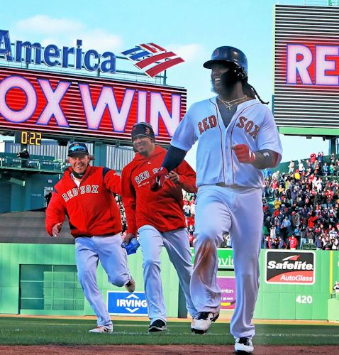April 5, 2018 ... Hanley Ramirez won the home opener for the Sox, his single in the 12th inning beating the Tampa Bay Rays, 3-2. With the bases loaded and one out, Ramirez hit the first pitch he saw the other way to right field. It landed in the last sliver of sunlight on a cold day at Fenway Park. Those left from the sellout crowd of 36,134 watched as Ramirez playfully tried to escape a mob of teammates before he was caught in front of the dugout. It was the longest successful home opener for the Sox since a 7-6, 11-inning victory against the Yankees on April 20, 1912, the first game at Fenway Park. The 6-1 Red Sox have won six in a row. It was Ramirez’s two-run double in the 13th inning of the last game, that pushed the Sox ahead of the Miami Marlins. He has six RBIs in six games. With two healthy shoulders, the left one having been cleaned out surgically in October, Ramirez can stay back and drive the ball with power. He’s also playing first base competently and running the bases with sound judgment. Jackie Bradley Jr. started the winning rally with a double to the gap in right field off Andrew Kittredge. Christian Vazquez then sacrificed the runner to third, clapping his hands as he left the batter’s box. The Rays intentionally walked Mookie Betts and called in rookie lefthander Ryan Yarbrough to face lefthanded-hitting Andrew Benintendi. He walked him on eight pitches. Ramirez put an easy swing on a changeup and the ball soared over the head of right fielder Carlos Gomez. Rookie lefthander Bobby Poyner pitched two scoreless innings for the win. He left a runner stranded at third in the top of the 12th inning. Trailing, 2-0, the Red Sox tied the game in the ninth inning, and it was Ramirez who had a big hit. Facing Tampa Bay closer Alex Colome, Betts led off with a single. After Benintendi walked, Ramirez lined a single to center field to score Betts. J.D. Martinez had a chance to be a hero in his first game at Fenway with the home team, but he grounded into a double play. Xander Bogaerts lined a two-strike pitch to left field, just over the reach of Mallex Smith as he went back to the wall. That scored Benintendi. The Sox left the bases loaded when Bradley grounded out. Red Sox starter David Price earned a loud cheer from the crowd when he walked off the mound after seven shutout innings. The lefthander scattered three hits, walked three, and struck out five. Price has thrown 14 shutout innings in two starts. Not since 1949, when Mel Parnell did it, had a Red Sox starter opened the season with consecutive starts of at least seven innings without allowing a run. Including the 2017 postseason, Price has thrown 26 consecutive scoreless innings at Fenway. Red Sox starters have an 0.86 earned run average and 0.88 WHIP. Carson Smith started the eighth inning of a scoreless game and immediately gave it up. He walked pinch hitter Smith before Matt Duffy drilled a poorly located two-seam fastball over the wall in center. The Sox, who have won four one-run games already, rallied to tie it then win it behind Ramirez.