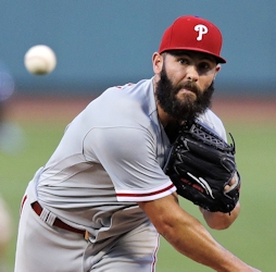 threw five innings and held the Phillies to two runs and three hits, but hurt