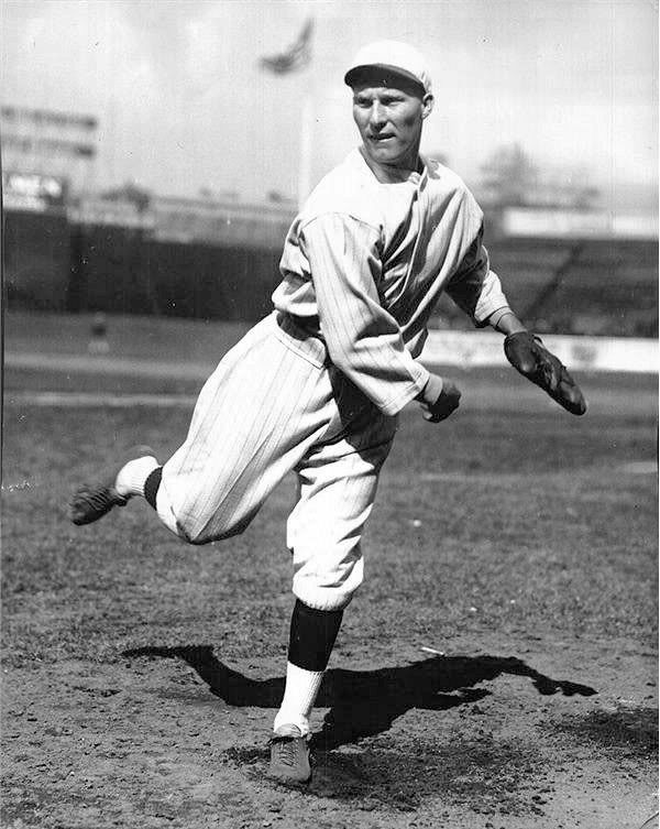 necessarily rest on merit. Nor is unpopularity necessarily deserved.” Mays did not become the rotation mainstay he appeared to be for the Red Sox. His career took bizarre twists from there. A bitter dispute with the team in 1919 led to his being sent to the Yankees in the middle of the season. In 1920, he became the only pitcher in baseball history to kill a batter with a pitched ball when an inside fastball struck Cleveland’s Ray Chapman in the head. Mays pitched for the Yankees for four years before he was sent to Cincinnati, and was later accused, according to baseball writer Fred Lieb, of throwing the World Series in 1920 and 1921. (The charges were never made formal or public). He closed out his career with the Reds, finishing with one season with the Giants. He compiled a 207-126 record and a 2.92 ERA over the course of his career. |