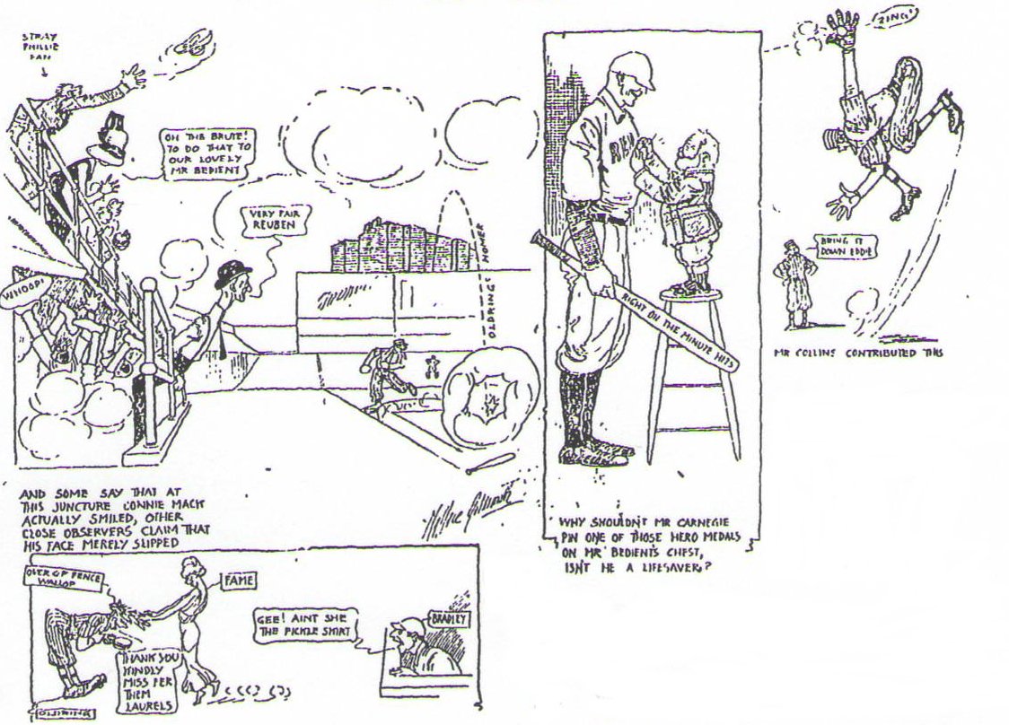 FENWAY'S FIRST TEAM April 25, 1912 ... The Nats fought like thoroughbreds today, but the Red Sox won because of the splendid pitching by Charley Hall, who had already won two games this season in relief. Hall allowed but four scattered hits. The Boston Speed Boys won by a score of 4 to 1. The game was full of sensational features with Hall pitching a masterly game. Harry Hooper got into the limelight with a nice triple over Germany Schaefer's head, scoring two men in the sixth inning and seemingly putting the game on ice. Duffy Lewis laced out a nice double during the game but it was nothing compared to his remarkable fielding. He made seven putouts and had one assist. The assist came when he threw the ball from deep left field on a dead line to Heinie Wagner, who nailed Clyde Milan at second base trying to stretch his single. He made several clever running catches and in the eighth inning, he brought the crowd to their feet with an old-fashioned circus catch. Henry hit the ball on a line and Lewis went for it up the bank, but fell and while tumbling, managed to spear the ball with one hand. Hugh Bradley played a great game at first base, taking care of several poor throws, and Les Nunamaker caught a superb game and nipped a man trying to steal second. Tom Hughes was on the mound for Washington and pitched a workmanlike game. He pitched with excellent judgment, but the home team could not be denied. Kid Foster again played another great ballgame as did Milan, but it was Hall who would always put away a batter ,when a safe drive would do some damage. Washington broke the ice in the third inning of a scoreless game when catcher John Henry started it with a pass and went to third when on Hughes singled to right. Harry Hooper made a bad throw that Hall intercepted and caught Hughes trying for second. Danny Moeller worked a walk and Hall threw to the firstbaseman Hugh Bradley, trying to keep Moeller close, as he took off for second. Bradley threw it down to Heinie Wagner, which allowed Henry to score, as Moeller turned around and went back to first. That made it 1 to 0 and would be the only run that was scored by the Nats in the game. The Red Sox tied up the game in the bottom of the third. Les Nunamaker opened with a single and Hall sacrificed him to second. Yerkes then scored Nunamaker with a nice double to left tying up the game. In the fifth inning the Red Sox took the lead when Hall led off and was hit by a pitch. Hooper sacrificed him to second and then Hughes passed Tris Speaker. Hugh Bradley hit a high fly ball to right that Moeller dropped, allowing Hall to score the Red Sox second run. Hall got Washington in order in the sixth inning and in the bottom half of the inning the Red Sox scored two more runs. With two outs, Nunamaker and Hall singled. Then Hooper drove the ball over Germany Schaefer's head for a triple, that scored both the runners. That made the score 4 to 1. The ninth-inning was the most interesting of all. Moeller drew a pass and then Foster singled. Milan hit a sharp ground ball which was well played to second by Yerkes to force Foster. Schaefer popped out to second and manager Clarke Griffith tried to get under Hall's skin, but Charley pulled himself together and struck out Jack Flynn to end the game. |
