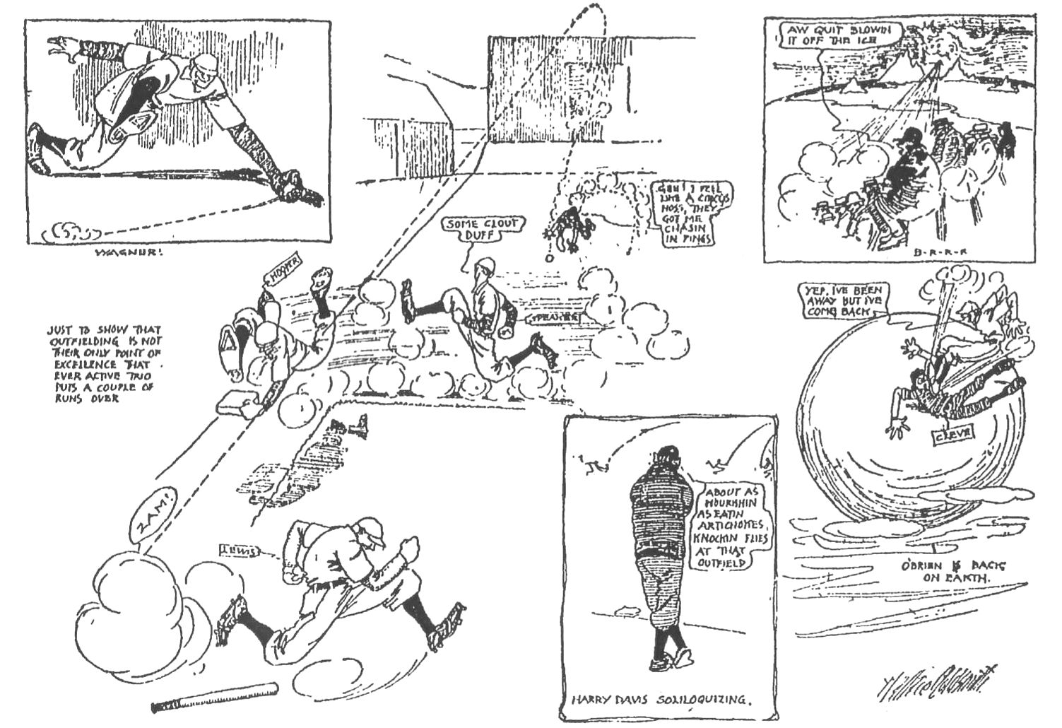 FENWAY'S FIRST TEAM May 21, 1912 ... The Red Sox continued winning by defeating Cleveland 3 to 1 and aided by the Highlander’s victory over the White Sox cut their lead to four games in the American League standings. The Cleveland team, under the management of Harry Davis, made its 1912 debut to the Boston crowd. They were beaten by the Red Sox by a 3 to 1 score. Cleveland presented their great left-handed pitcher, Vean Gregg and his work was superb. Manager Jake Stahl decided to bring up Buck O'Brien, and as a result one of the finest pitching duels of the season ensued, with O'Brien showing the way with fine control, practically duplicating the grant performance of Joe Wood the day before. There was one man down in the seventh, before the hard-hitting Cleveland team was able to turn in a hit, and only three hits were made off Buck all day. O'Brien was given great support by Heinie Wagner, Larry Gardner, Hugh Bradley, Duffy Lewis and Tris Speaker, turning in sensational fielding stunts. Wagner made a great one-handed running pickup and clever assist that was nothing short of phenomenal. O'Brien was never lost for speed, curves, and the strategy that mystified the visiting batters. He closed the game with a dash that pronounced that the Brockton boy is really a great pitcher. So effectively was the pitching of O'Brien, that manager Davis and his players asked the umpires to examine the ball, claiming that the Red Sox pitcher was trying to work in some foreign substance to make the ball break so much. The trouble actually was with the great pitching of O'Brien and the fast fielding of the team behind him. Larry Gardner played a remarkable game at third. In fact the Red Sox went through the game with a brand of fielding that was exhilarating. The day was cold and the game was playing very quick order, without any unnecessary arguing, the visitors continuing their policy of playing baseball in a clean and sportsmanlike manner. Harry Hooper opened the Red Sox half of the first inning with a pass and then stole second. After Steve Yerkes struck out, Speaker hit a grounder that Ivy Olson fumbled. Duffy Lewis then came across with a line double to the bank in left, to score the two baserunners. The next two men went out at first and Cleveland had another comeback effort on their hands. With two down in the second inning, Roger Peckinpaugh drew a pass, only to see O'Brien throw the next man out at first. The Red Sox went down in order in their half of the second and third. The Sox scored their third and last run in the fourth inning. Gardner singled and went to third on Hugh Bradley's single to right. Wagner forced Bradley and then Nunamaker forced Wagner at second, allowing Gardner to score and making it 3 to 0. With two down in the sixth inning, Gregg hit a fast grounder close to the bag at second. Wagner picked up the ball with his left hand on the dead run and got him at first for a superb running play. Finally in the seventh, Cleveland scored their only run. Ted Easterly opened with a fast grounder that Gardner played spectacularly and threw him out at first. Buddy Ryan singled and Neil Ball was thrown out by O'Brien. Peckinpaugh came up and singled to left and Cleveland's only run crossed the plate. There was nothing to the game after that point that had O'Brien on edge. It was a great win and a great pitching performance. |