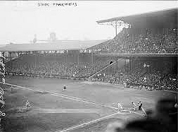 FENWAY'S FIRST TEAM July 6, 1912 ... Another large crowd gathered at Shibe Park this afternoon and witnessed the champion Philadelphia Athletics go down before a severe onslaught inflicted on them by the Boston Red Sox, 11 to 5. The win made it four out of the series of six games played here in Philly, while the whole baseball world was eagerly waiting the result, which the majority of the fans had predicted to be a setback for the league-leading Red Sox. It looked like a sure win for the Athletics when it was announced that Chief Bender would be pitching against Eddie Cicotte. Cicotte tripped over a ground ball, hit a man in the back at second, and floundered with the ball for four innings, while five large Philadelphia runs were put on the scoreboard. Boston had gathered in just two runs in the first two innings off the Chief on six hits. Things were looking bright indeed for the A's, up 5 to 2 when Olaf Henriksen came in to bat for Cicotte in the fifth inning, with one out, and he banged the ball against the left-field fence for three bases. Harry Hooper then singled and Speaker drew a pass. Lewis, up next, also singled and Harry Lord dropped Larry Gardner's fly ball close to the fence, and thus four runs came over the plate to give the Red Sox a 6 to 5 lead. The Sox immediately got busier when Charley Hall came into pitch for Boston. He got out of a small hole after Wagner had started the inning with a wild throw past Jake Stahl at first. The third man was nipped at the plate on a bluff throw to second by Carrigan, who sent the ball back to the pitcher and Eddie Collins was an easy out when Hall return the ball. The Red Sox scored another run in the sixth on Carrigan's double and Hall's single. With one down in the bottom of the inning Hall pulled a muscle in his side on a play to get the ball after passing Jack Lapp. He was forced to retire from the game in favor of Hugh Bedient. Only two men saw first base after Hugh got in the game and he struck out the side in the seventh inning. Jack Coombs relieved Bender in the seventh and passed three men in succession without getting one strike. Duffy Lewis had Coombs in for two balls with the bases full. He had pitched 15 balls for one strike and not a Boston man that the batter off the shoulder. In came Herb Pennock to pitch and he immediately passed Lewis, forcing Hooper over the plate. Gardner then worked him for another pass and a second run was forced over the plate. A pair strikeouts to Stahl and Wagner were put up on the board before Carrigan was safe on a hit that brought the third run over. Doubles by Tris Speaker and Duffy Lewis were good for one run in the eighth and after that the Red Sox went down in order, having scored 11 runs in total. The Athletics were not playing like champions in the series and it appears they have lost their aggressiveness, while the Red Sox players, having noted this, seemed to be playing even harder. The day was extremely warm and the players were indeed glad when Stahl took the final grounder from Eddie Collins for the last out. The team left for Boston on the 9 o'clock train, and while tired, are a very happy lot of ballplayers. |