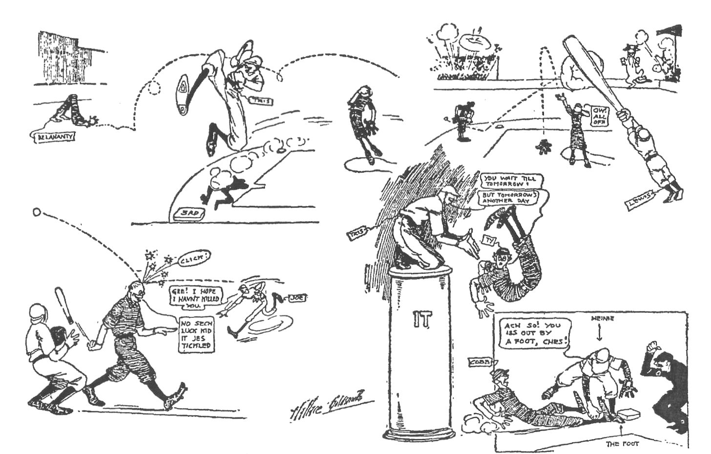 FENWAY'S FIRST TEAM July 12, 1912 ... Boston Red Sox won a doubleheader from the Detroit Tigers at Fenway Park today, the first game by 4 to 1 with Ray Collins matched against Joe Lake, and the second game by a score of 1 to 0 in 11 innings, with Joe Wood and Ed Willett at their best. The Red Sox scored in only two innings of the 20 innings they played, while the Tigers managed to get Ty Cobb around in the ninth-inning of the first game for their only run. Both were sensational games, with Boston opening fire on Lake in the sixth inning of the first game with base hits by Steve Yerkes, Tris Speaker, Duffy Lewis, Larry Gardner and Heinie Wagner, all been good for the four runs that were needed to win the game. Ray Collins pitched masterfully, holding the hard-hitting Tigers to just four hits, while his all around support was near-perfect. The Red Sox were hitting Lake however quite easily, knocking out 12 hits and the game really was not as close as it seemed. The second game was one of the best contests seen at the ballpark the season. Willett was near-perfect, forcing Joe Wood to pitch an even more remarkable game in order to win. Wood held the Tigers to five hits in the 11 innings. There were several times when a slip up would have meant a loss for Boston, as is the case during the second inning, with men on first and second for Detroit, and Joe Wood struck out the next three men. Then in the fifth, with a man on second and one down, Wood got the next two men on easy plays. In the sixth inning, Ty Cobb led off with a double, but never left the base as Wood disposed of the next three men in order. Again in the ninth, with one, Jim Delehanty hit for two bases and was taking a big lead off second base, hoping to score on a hit, but a great throw was made by Hick Cady down to Heinie Wagner, to catch him off base for the second out. Then Wood struck out George Moriarty for the third out. In the first inning Ty Cobb was picked off second base as Heinie Wagner slipped behind him and Joe Wood turned and fired a bullet to nip him. In the first inning, Hooper was at second with one, but was thrown out trying for third. With two down in the third, both Wood and Hooper singled, but Yerkes was an easy out. Wood opened the sixth with a base hit but he never reached second. Gardner was nipped at first after reaching base in the seventh, and Speaker doubled in the ninth, with one out, only to see Lewis and Gardner thrown out at first. With one out in the 10th, Wagner walked, only to see the next two men thrown out at first on great plays by Donie Bush. There were two down in the 11th inning when Tris Speaker lined the ball off the wall in left for three bases. Duffy Lewis followed and brought him home with a sharp single for the walkoff win and the sweep of the doubleheader. Needless to say, both the fans and the players were delighted when they left the ballpark. Hugh Jennings worked on the lines in both games, encouraging his boys to the delight of the Boston fans. The day was perfect for baseball and the games are well handled by the umpires. |