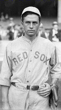 FENWAY'S FIRST TEAM July 16, 1912 ... The Red Sox made a strong finish, completing the series against the Tigers by beating them 7 to 2 and sending Detroit on to Philadelphia, having won only one of the five games played at Fenway Park against the Speed Boys. The game was an engagement between two tall left-handers, Ray Collins for the Sox and Harry Moran for Detroit. The Red Sox hit Moran hard throughout the game and the Tigers made outs most of the time with long fly balls to the outfield that were not much to talk about. As in the first three games of the series, the Sox outplayed the Tigers in most aspects of the game, forcing the breaks to come their way and did some hitting which was as much clutch as hard. For the time it looked as if Hughie Jennings would have to put in another pitcher, but he made Moran go the entire distance, which was just as well, considering the way some batters were bunching their hits together. Ray Collins won his second straight game against the Tigers and his fifth straight overall, showing his good form as he did against Philadelphia hardly two weeks ago. He kept the ball over the plate, sending no players to first base on free passes, forcing them to hit the ball all the time. He used his overhand delivery almost continually and worked in a change of pace, that kept the Tigers guessing. His fastball bothered the visitors because they kept swinging under it and lifting it high into the air. The Red Sox got ten hits to the Tigers six, but all of Boston's base hits came in the three innings in which the scoring was done. The Tigers half dozen hits were scattered through four innings, a triple and a single producing one run and two singles coming together in the ninth for the other. The game went off like clockwork, both teams being on their toes in the field. In the second inning Larry Gardner started things off with an infield hit on a bunt. A doubleplay seemed inevitable when Jake Stahl hit a ground ball down to Moran whose throw to second beat Gardner by a couple of steps, but Donie Bush let the ball get away from him, allowing Gardner to make it to third and Stahl down to second. Heinie Wagner hit a sacrifice fly to Jim Delehanty scoring Gardner and Stahl made third on Moran's relay back to Oscar Vitt. Bill Carrigan then singled to left to score Stahl and after Ray Collins sacrificed Carrigan to second, Hooper brought him in with a single to left. That gave the Red Sox a 3 to 0 lead. The Tigers had a man on base in the first three innings, but two runners were left at second base and the other at first for no runs. They went out in order in the third while Boston added another run on the combination of a pass to Gardner, Stahl's single, that put Larry on third, who scored when Stahl stole second drawing the throw from Oscar Stanage. In the fourth inning the Tigers scored when Cobb hit a triple over Speaker's head. Sam Crawford followed with a fly ball and Cobb trotted home easily. In the fourth the Red Sox passed up a chance to score again, as Carrigan began with his second hit and Collins was passed. Hooper advanced the runners with a sacrifice but Steve Yerkes hit the ball to Vitt who got Carrigan at the plate and then Yerkes was forced at second on Speaker's grounder to Bush. In the fifth and sixth, a pass to Carrigan was the only excuse that the Red Sox add to get to first, and he was thrown out trying to steal. But in the seventh, a long triple to right by Hooper and singles by Speaker, Carrigan and Stahl, together with a double steal gave the Red Sox three more runs. In the ninth with the score 7 to 1 against them, a hit by Bush, Crawford's out at first and a hit by Delehanty scored the Tigers second run to make the final 7 to 2. Harry Hooper led the Red Sox batters, getting three nice hits one of which was a triple. He also drew a base on balls and laid down a sacrifice. Jake Stahl got a double and a single, while Bill Carrigan produced two base hits. Tris Speaker did not hit the ball safely until his last time at bat. For the Tigers, Ty Cobb hit the ball harder than Speaker and produced a single and a triple, while teammate Jim Delehanty got two singles. |