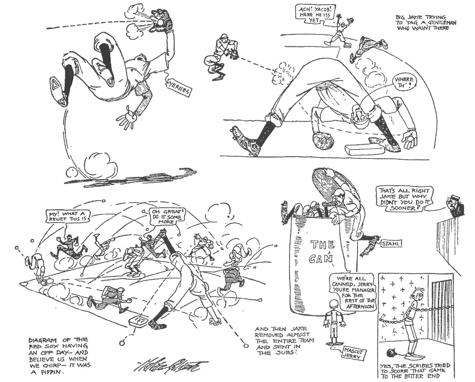 FENWAY'S FIRST TEAM July 24, 1912 ... The most proper way to describe the game played at Fenway Park, where the flying Red Sox lost to Cleveland, 11 to 6, would be by the use of a large pot of red paint and a big brush. From start to finish it was simply a case playing out of form both physically and mentally, and therefore Cleveland constructed an old-fashioned blowout. Miscues by the Sox and Cleveland's bats started trouble in the first inning off Hugh Bedient. With two outs, the Naps cut loose with singles, doubles and triples. Charley Hall came in and took his place, and it looked for a while as if the home team would settle down and making a fight of it. The Red Sox were hitting the ball all over the yard but right at the Cleveland fielders, until was decided that pitcher Bill Steen had a four leaf clover concealed somewhere. Boston had a chance until the seventh inning when Cleveland scored five runs on three hits and four errors to seal the deal. Manager Stahl then gave the crowd a chance to cheer by sending in seven new men, leaving Duffy Lewis and Harry Hooper alone among the regulars to finish the game. The boys turned in three runs in the ninth, with one in the eighth, scoring four of the six runs in the game. Steen grew wild when the new men started to play and he passed three of them. Hugh Bradley hit for two bases and Olaf Henriksen knocked out a single. With one in the ninth, Vean Gregg was sent into the game, fanning the last two men. The only man to have anything to do was young Marty Krug at shortstop, who had two chances. He fumbled the first one and the next time threw wild to first. Cleveland played a great game defensively in contrast to the poor work of the Red Sox, and were never in danger after the third inning. It was simply an off day for team which is playing remarkably smooth baseball, and the chances are that they will continue to do so. In the first inning with two men out, Heinie Wagner failed to pick up Joe Jackson's grounder. Art Griggs then doubled, Terry Turner singled, Joe Birmingham smashed one to right for three bases and Buddy Ryan burned one to centerfield, all good for four runs before Steen had even taken the mound. In the bottom of the first the Red Sox got one run back when Harry Hooper walked and Steve Yerkes put up a fly ball to short, followed by Joe Jackson making a great catch on Tris Speaker's long drive. Then Hooper stole second and scored on Duffy Lewis' single. Gardner also singled to send Lewis to third and then stole second base, but both runners went no further when Jake Stahl struck out. Cleveland and the Red Sox traded runs in the third inning and things stayed quiet until the seventh. With the score 5 to 2, the Nats erupted for five runs to make the game 10 to 2. The Red Sox chipped away in the eighth-inning with one run that Cleveland got back in the ninth. Now with the score 11 to 3, the Red Sox substitutes got busy in the ninth and put up three runs on the board to make the final score 11 to 6. It was simply one of those games to forget, and after losing six straight at Fenway, Cleveland got the satisfaction of slaughtering their nemesis. |