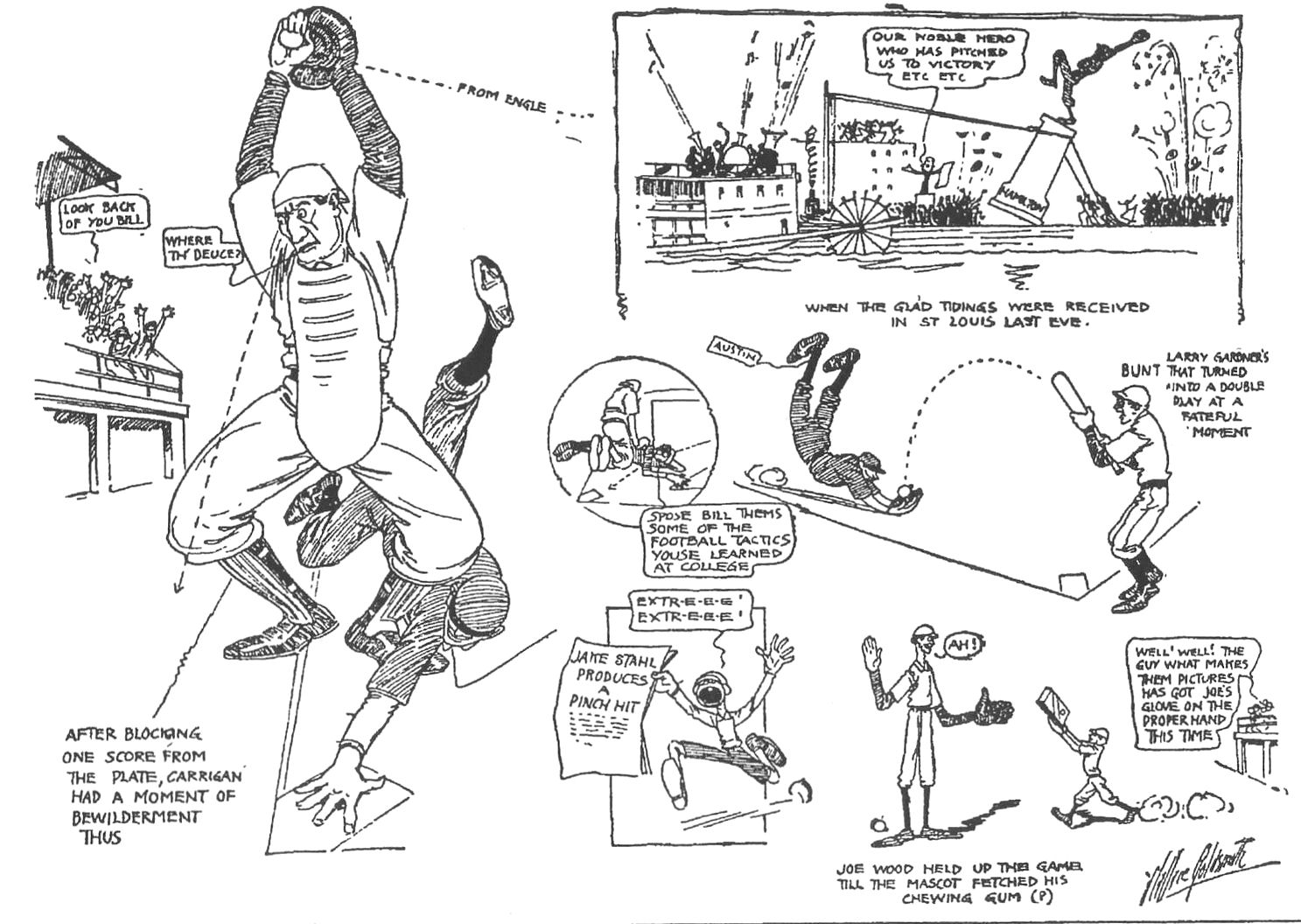 FENWAY'S FIRST TEAM August 16, 1912 ... The St. Louis Browns left town a happy looking lot of ballplayers after they had beaten the Red Sox in the final game of their series at Fenway Park by a 3 to 2 score. They put up a very good ballgame in the final of the series, although they were not very strong with their bats. The left-hander Earl Hamilton pitched a superb game and got good support from his fielders, as the Sox players hit the ball hard at times. Hamilton was clutch and kept the ball over the plate for St. Louis while Buck O'Brien worked the first seven innings for the Sox but was taken out for a pinch-hitter in the person of Jake Stahl. In the opening inning, Shotton sent a fly ball to right-field that went for three bases, as Hooper lost the ball in the sun. Hooper return the ball to third base and threw it by Gardner, but O'Brien was backing up and threw Shotton out at the plate. In the third inning with one out, Bill Carrigan singled and stole second. He scored on Harry Hooper's double that hit the left-field foul line. That gave Boston a 1 to 0 lead. St. Louis scored two runs in the fifth inning. With one out and men on third and first, Paul Krichell set up a pop up for Clyde Engle. Engle took the ball and threw it to the plate, where Carrigan had to reach over his head and turned the wrong way to get the man taking a long chance on trying to score from third. In the mix up, the player was called safe. Two singles followed and St. Louis had the lead, 2 to 1. In the sixth inning they scored another when Jimmy Austin walked and Del Pratt singled. They were both moved along with a sacrifice and Austin scored on Gus Williams' sacrifice fly to Duffy Lewis. In the seventh inning down 3 to 1, Heinie Wagner led off with a single, and after Carrigan was thrown out, Jake Stahl came up to pinch-hit for O'Brien and singled himself, scoring Wagner. Marty Krug came in to run for Stahl and Harry Hooper was then hit by a pitch ball. A pop fly to first was the best that Neil Ball could do and then with two on base and two out, Tris Speaker made a fine bid, but Shotton, playing deep in center field, pulled down the ball against the bleacher fence. Joe Wood came in to pitch in the eighth-inning and with two outs, passed Williams, who then stole second. Heinie Wagner made a great one-handed running catch on Compton's drive to save another run. In the ninth-inning Wood struck out the side. In the bottom of the ninth, with two outs, Wood lined a double to right-field. It was now up to Harry Hooper to bring him home with a single, but Harry walked, leaving it up to Neil Ball. With two outs and two on base, he hit the ball on a dead line to right-center. It looked good for the money but a clever running catch by centerfielder Bert Shotton robbed him of a hit, to end the game and give St. Louis a 3 to 2 win. It was one of those games where the home team had a dozen chances to win with a base hit. Two doubleplays by St. Louis proved to be quite a blow to the Red Sox opportunities for scoring. The usual pepper displayed by the Sox seem to be lacking until after St. Louis had taken a 3 to 2 lead, and then they put on their steam and hustled to pull it out. |