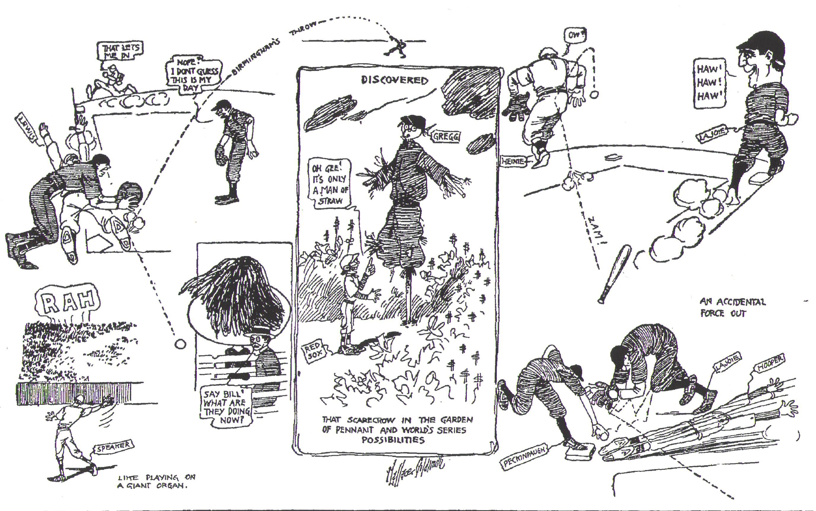 a passed ball, and a fumble by Larry Gardner. Three Naps pinch hitters went into