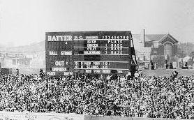 FENWAY'S FIRST TEAM September 13, 1912 ... The Red Sox express rolled into St. Louis this morning from Chicago and continued to show their class at Sportsman's Park, putting the first game of the series away for safekeeping by a 6 to 2 score. Hugh Bedient was picked to do the pitching, and though a bit wild at times, he managed to go the distance by effective work and phenomenal support by his team. Manager George Stovall sent in his 6'-4" left-hander, Carl Weilman and in seven of the nine innings that he pitched, he looked good. But in the first and eighth innings, the Speed Boys put the bat against the ball and scored five of their six runs. It was simply a continuance of the way they were playing in Chicago, always confident and producing when needed. There were two misplays charged to the Red Sox, but they were on difficult plays and may be considered excusable. Tris Speaker dropped a fly ball after a long run while taking the ball at full reach over his head, holding it for an instant, before it popped out of his glove. Steve Yerkes made a wild throw in trying for a doubleplay, when he took a grounder, touched second for the force, and threw off-balance to first. These errors had nothing to do with the two runs scored by the Browns in the end. Wild throws by Jimmy Austin and the pitcher gave Boston two of their runs, while the other four went over the plate as result of clean drives by Yerkes, Larry Gardner and Jake Stahl, all who knocked out doubles. The Red Sox started in the first inning when Harry Hooper opened up with a base hit and Yerkes smashed the ball against the left-field fence for two bases to score Hooper. Speaker got two bases on a wild throw by Austen, and Lewis forced Yerkes at the plate. Larry Gardner then brought home two men with a sharp base hit to left. That made the score 3 to 0 and the Browns had an uphill fight.