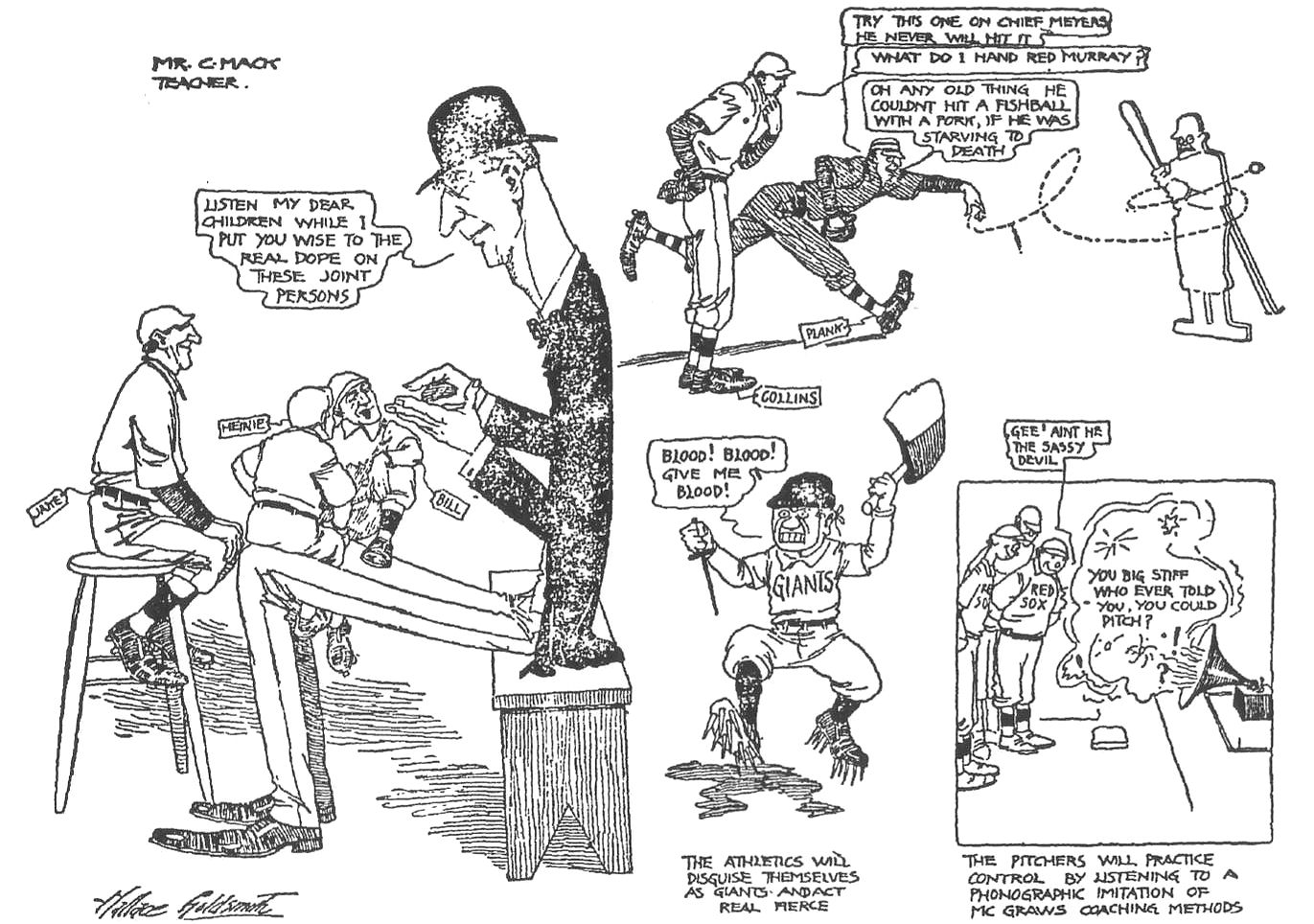 FENWAY'S FIRST TEAM Tickets for the World Series are ready for delivery. All the reserved seats have been allotted and notices will be sent to the 6500 fortunate applicants for the remainder of the seats. The ticket office for unreserved seating will be open from 9AM to 5PM. Box seats are $5 each, grandstand are $3 each and $2 for the temporary grandstand. Bleacher seats and left field seats on Duffy Lewis Terrace are $1 each. There are 20,000 unreserved seats. The Red Sox worked out a Shibe Park today. President McAleer requested a block of seats at the Polo Grounds for the Royal Rooters and their band, but Giants president John Bush, re-stated the first-come first-serve policy that the Giants have in place. Several of the Red Sox and Athletic players played golf in the afternoon. Joe Wood and Neal Ball gave Tris Speaker and Jack Coombs a good beating. |