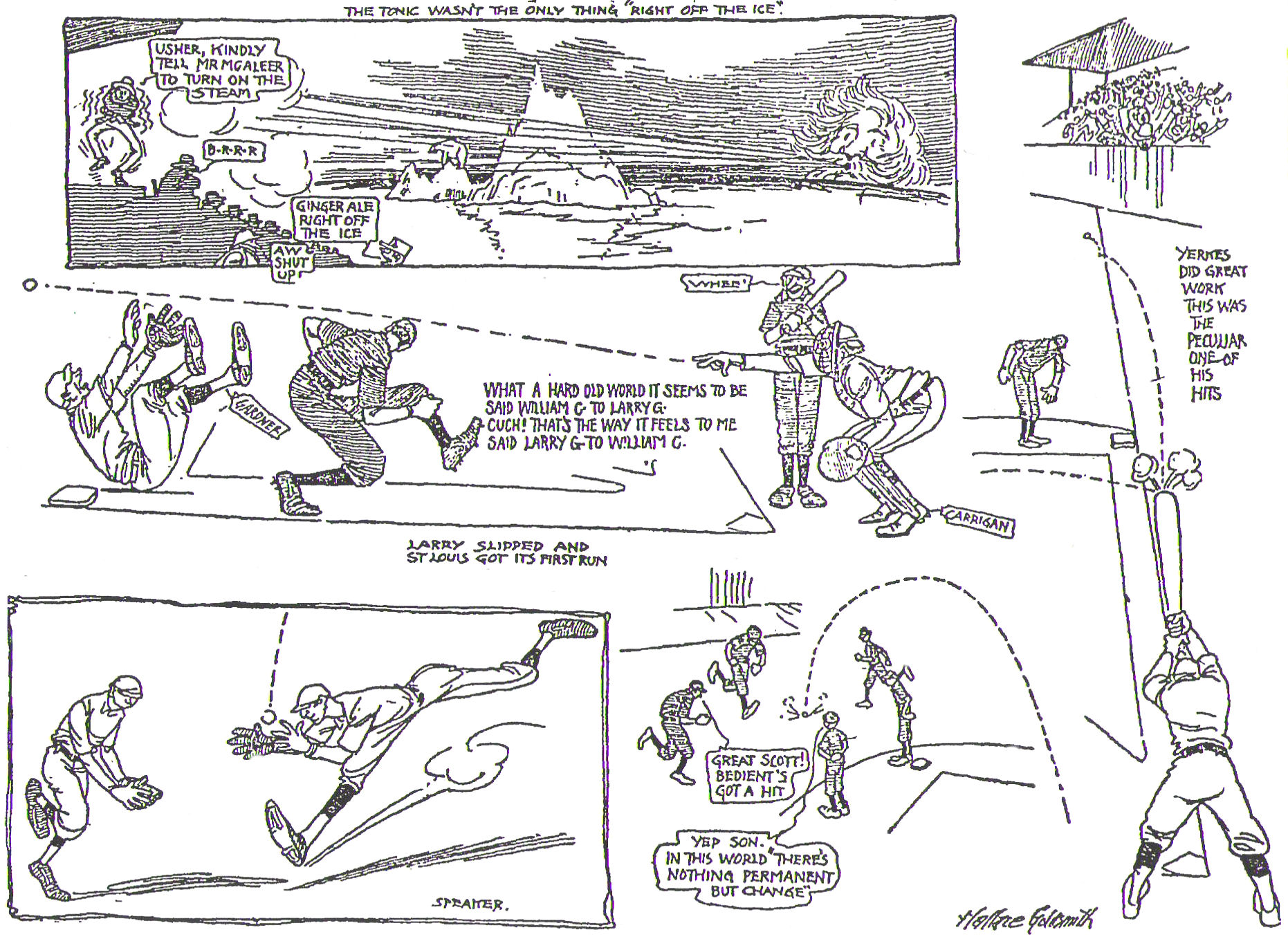 In the bottom of the inning Yerkes hit a fast ball singing against the left bank for two bases. Speaker unsuccessfully tried to lay down a bunt and popped out to Stovall. Lewis was then thrown out at first and with two outs it was up to Larry Gardner. Larry made good with us clean single to