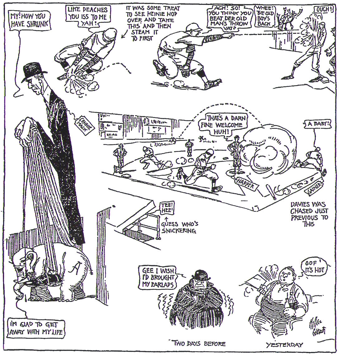 WORLD CHAMPS AGAIN April 26, 1915 ... The Red Sox put up a superb all-around game with Philadelphia and romped home to a shortened 9-2 win. It was announced before the game that no new inning would start after 4:30 so the Athletics could catch their train to Washington at Back Bay Station. It was 4:14 at the close of the seventh inning, but just as the Athletics came up to bat, a shower began and Umpire Chill called the game. The Red Sox took a commanding lead early in the game on some sharp hitting by Harry Hooper, Heinie Wagner, Del Gainor and Everett Scott, and increased their lead as the game went on, as a result of some erratic pitching by the Philadelphia pitchers, and a second timely hit by Wagner. Connie Mack started Chick Davies who was knocked out in the third inning. The work of the Philly pitchers was not good as the Red Sox hit them all very freely and passed seven men. Besides allowing seven timely hits, including a triple by Gainor that practically put the game on ice. The hitting and fielding of Heinie Wagner was the brightest feature of the game, as he drove home timely runs and sparkled in the field. He had two hits, with 5 RBI. His comeback is proving to be one of the sensations of the early season. Babe Ruth made his first start for the Red Sox and made a good showing, passing only two men. In the second inning, the Athletics had a chance to take a good lead. Lajoie opened with a two base drive against the left-field fence and Stuffy McInnis was safe when and Hal Janvrin booted his ground ball. Jack Barry singled to left to score Lajoie and McInnis tried to score on a short passed ball, but was thrown out at the plate, by Carrigan to Ruth. Ruth got the next batter on strikes and the last batter grounded out to first, but the Athletics were up 1 to 0. In the third inning, Ruth drew a base on balls and went to third on a single by Harry Hooper to center. Hooper went to second on Otis Strunk's throw to third. Wagner's single to left scored both Ruth and Hooper, to make it 2 to 1. After Tris Speaker flew out to center, Duffy Lewis drew a walk, signaling the end for Davies. Del Gainer was up next and smashed the ball over Strunk's head, in center, for three bases, scoring Wagner and Lewis. Everett Scott scored Gainor with the fifth run of the inning on a single to right, but was thrown out trying for second. The inning ended when Janvrin was called out on strikes. The Sox scored another run in the fourth with two outs. Hooper reached first on an error and stole second, scoring on a single by Wagner. Then in the fifth inning, with one out Gainor, Scott and Janvrin all reached base on free passes. Carrigan lined a drive to deep center allowing Gainor to score. Ruth struck out to end the inning, but the Red Sox were up now 7 to 1. The Athletics scored one run in the sixth, but in the bottom of the inning, the Red Sox added two more. Hooper drew a pass and scored when Wagner laid down a sacrifice bunt, that was thrown over McInnis' head at first. Wagner then scored on Duffy Lewis' fly ball to centerfield, to give the Sox nine runs. Heinie Wagner's play was thoroughly enjoyed by the fans and his comeback is certainly one of the big sensations of the season. |