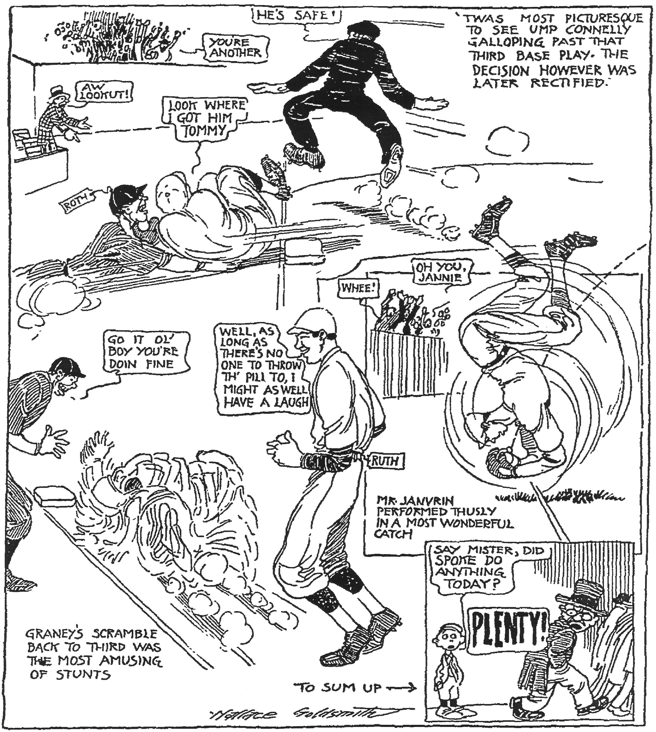Ruth gave up two runs in the first inning. After he fanned Jack Graney, Terry Turner and Speaker ripped out base hits. A freak hit by Chick Gandil gave them their two run lead. He hit the ball at Larry Gardner, who knocked it down toward Jack