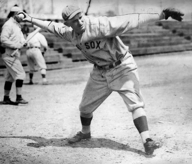 The second game the Red Sox won 7 to 2 after trailing 2 to 1. Three hits in the fourth inning against Carl Mays put the Athletics ahead. The lead was momentary because the Sox came right back against Joe Bush and scored four runs in their