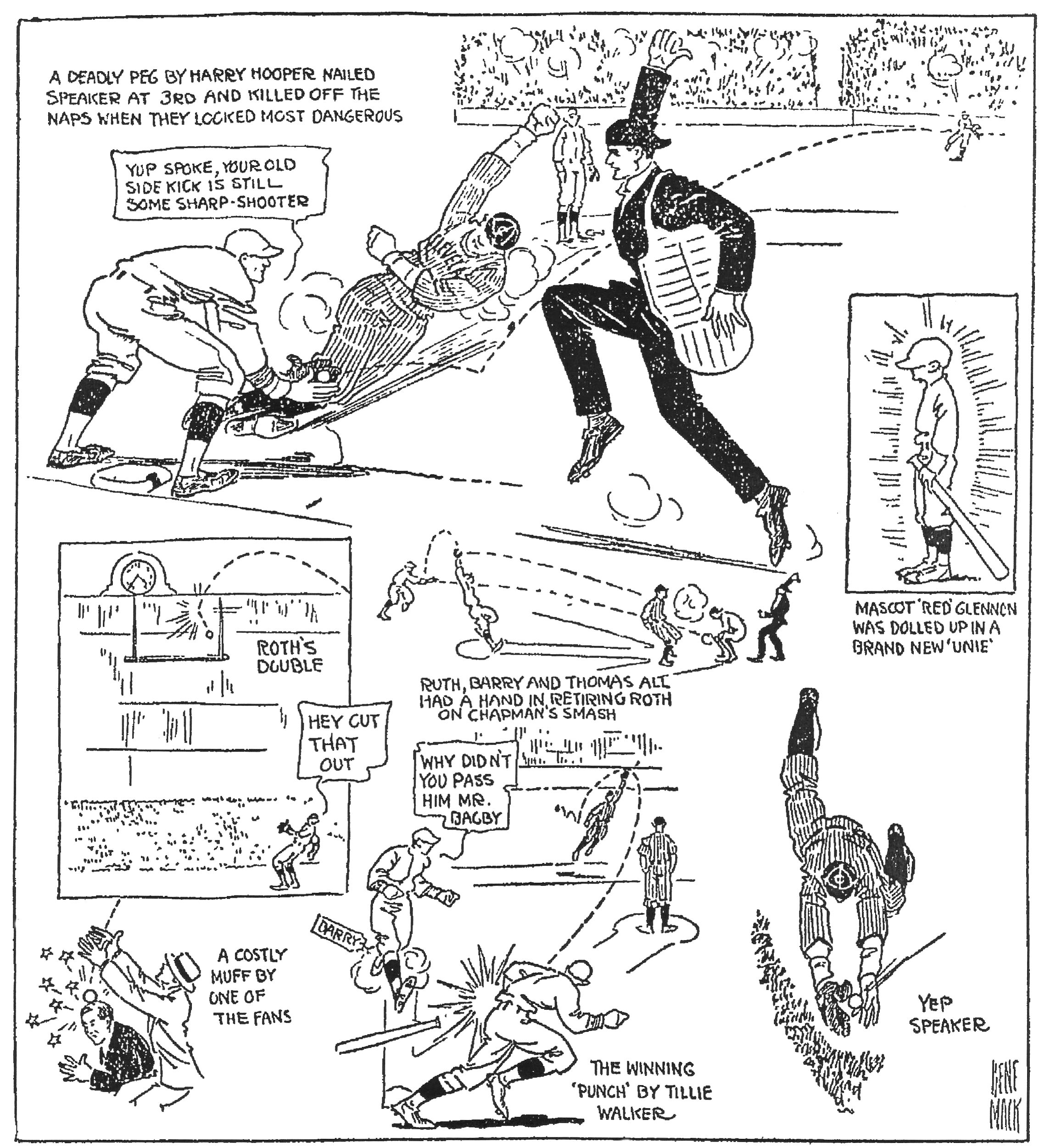 As usual, all eyes were on Tris Speaker and he was there all the time with his fielding and got in one timely hit during three at bats, stealing second base also. |