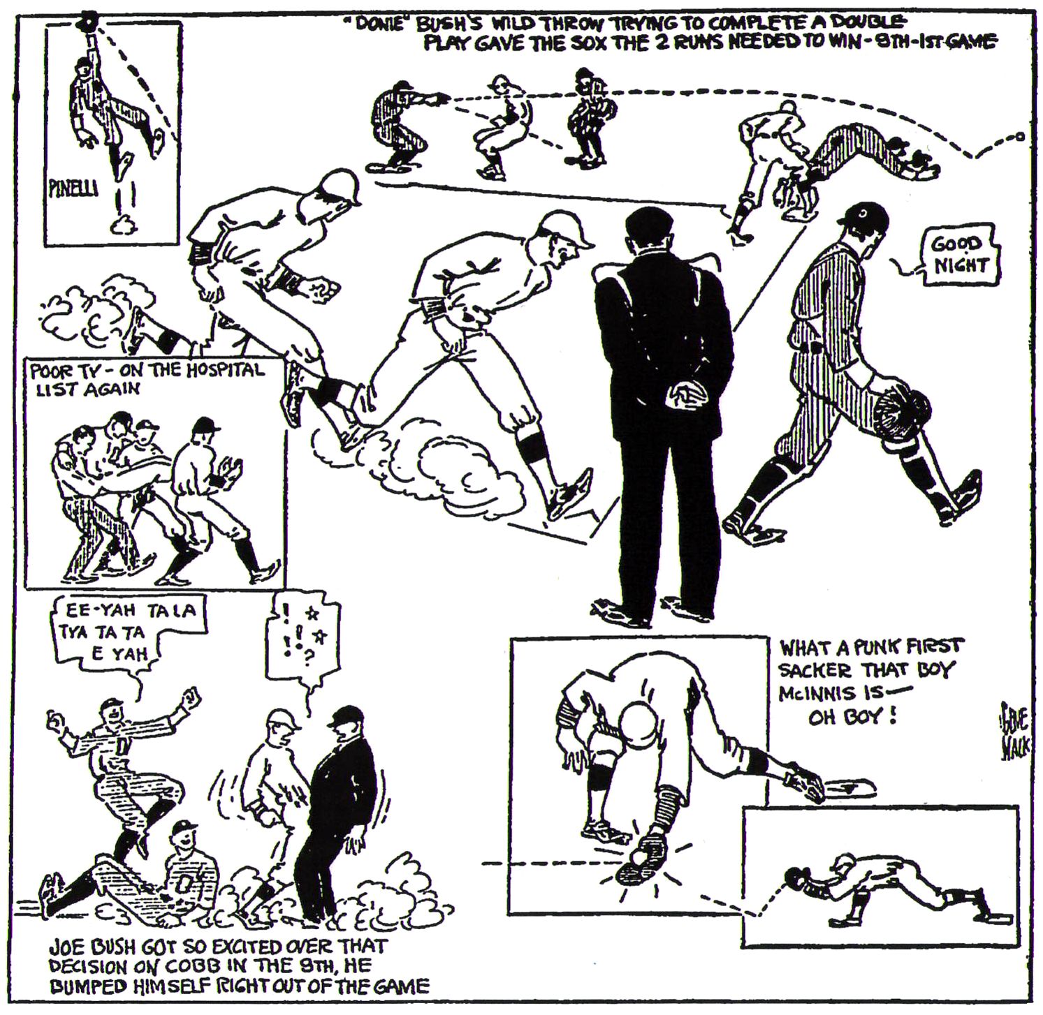 SOLD ... July 14, 1920 ... The Red Sox won both games of the doubleheader with the Detroit Tigers, the first one 6 to 5 and in the second 4 to 0. The ninth inning of the opening game was full of all kinds of thrills. The Red Sox apparently had the game sewed up, 3 to 1 at the end of the eighth-inning, but before the visitors were retired in the ninth, it was 5 to 3 against them. Acting manager Harry Hooper was out on the coaching lines and the crowd of 8000 showed him that they were glad to see him back in uniform. Tim Hendryx was back in center field for the first game. Kid Foster was given a rest in the second game, with Ossie Vitt covering third and putting up a spectacular game in the field. Joe Bush and Doc Ayers were pitted up against each other in the first game and Joe Bush pitched as good as he ever has. Only two hits were made off him in the first eight innings, but three were made off Ayers in the first six. The Tigers were the first to score and the Red Sox worked it into a tie in the third. The deadlock went to the seventh inning, when Wally Schang led off with a double and Stuffy McInnis beat out a bunt. Foster was hit by a pitch ball and after Everett Scott flied out to right, Tim Hendryx banged one off Ayers' leg allowing Schang to score. McInnis took third and then scored on Joe Bush's sacrifice fly. The Tigers had been sent down practically in order after the first inning, up until the ninth and were two runs down when they came to bat, down 3 to 1. Ralph Young, the first batter up, was hit by a pitch and Donie Bush grounded out to Foster. But McNally, in his haste to make a doubleplay, dropped the ball and both runners were safe. Ty Cobb was ordered to bunt and did so, pulling the ball down the first base line. Joe Bush came over and covered the bag, taking the throw from McInnis on a close play. The umpire ruled that Cobb was safe. Bush put up an argument and bumped against the umpire, immediately getting thrown out of the game. So Herb Pennock came into pitch with the bases full and nobody out. Bobby Veach came to bat and hit one right back at him which he deflected over the McNally, who made the play at first as Young scored. Cobb, in sliding into second base, wrenched his ankle and was carried off the field. Bob Jones came in to run for him and Ira Flagstead was passed purposely. Ellison came up next and singled through the box, scoring both Bush and Jones. Babe Pinelli hit a fly ball on which Ellison was able to tag up and take third, scoring a moment later on a double steal, to make the score now 5 to 3 in favor of Detroit. So matters looked kind of bleak when the Red Sox went in for their last at bat and had to face the pitching of Howard Ehmke, one a Hughie Jennings' best pitchers, who was brought in to make sure that the Tigers held the lead. Stuffy McInnis, Kid Foster and Everett Scott, the first three men up, hit safely. One run was forced over the plate when Tim Hendryx walked and the tying and winning runs came in when Donie Bush threw wild to first base, in trying to complete a doubleplay on a ground ball by Benn Karr, who was pinch hitting Pennock. The final score was 6 to 5 in a thrilling comeback by the Sox. Pennock then followed on in the second game and was brilliant, as the Tigers had to send up a patched up team. Donie Bush suffered a strained leg in the first game and retired early in the second one. Ralph Young was moved over to shortstop and Babe Ellison, being spiked by Mike McNally on a slide into second base, had to be taken out of the game. Jones was then sent in to play shortstop and Young returned to his regular position at second base. Sammy Hale played centerfield in place of Cobb. Neither Cobb, Bush nor Ellison were severely hurt and it was said that all might be back in the game tomorrow, although that seems rather doubtful. The Tigers could do nothing against the Red Sox southpaw, making only four hits and failing to score at all. Oscar Stanage, who cracked out a double, was the only one to see second base. The Red Sox got a run in the second inning on a double by Schang, a sacrifice by McInnis and a wild throw by Stanage, when he had Schang trapped between third and home, on McNally's high bouncer down to Pinelli at third-base. Doubles by Scott and Roxy Walters in succession, a sacrifice by Pennock, and a wild pitch, gave the Red Sox two more runs in the fifth. Another came across in the eighth, on a double by Mike Menosky, a single by McNally and a double by Scott to give the Red Sox a 4 to 0 win. Everett Scott has now played in 601 consecutive game for the Red Sox. |