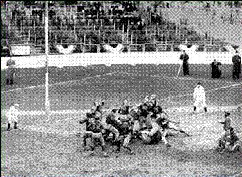 BOSTON'S NFL EAST CHAMPS December 13, 1936 ... The Boston Redskins were walloped today by the Green Bay Packers in the NFL Championship Game, by a score of 21-6, at the Polo Grounds in New York. Two long passes and a blocked punt gave the Packers their touchdown. Green Bay’s power, speed and reserve strength were too much for Boston to contend with, especially after the Redskins lost Cliff Battles, with a leg injury, a few minutes after the game started. Green Bay had a constant threat with its aerial attack, with Arnie Herber passing to his two favorite targets, Don Hutson and Johnny Blood. The first half of the contest was exciting. Green Bay jumped on the board when Herber connected with Hutson on the dead run with a 35-yard pass for their first touchdown. The ball was on the Boston 43 yard line. Herber took the snap and threw a strike to the coffin corner catching Hutson in full stride. But the Redskins came back with a touchdown of their own on the first play of the second period. Don Irwin and Pug Rentner ripped off large chunks of yardage between guard and tackle, moving the ball 78 yards, with Rentner taking it in from the 1-yard line for the score. Riley Smith mixed the extra point leaving his team behind 7-6 at the half.