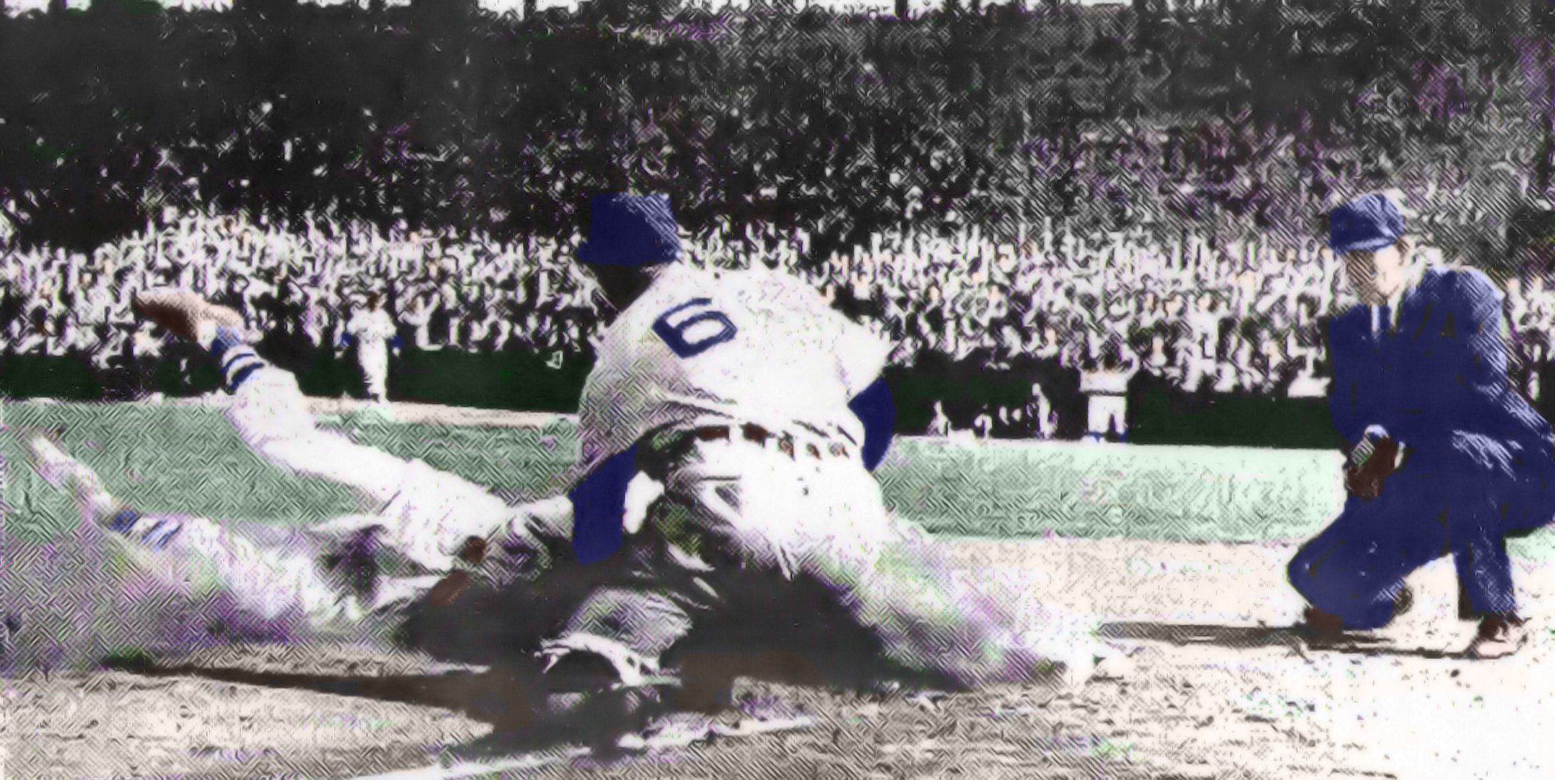 York headed for second and it looked like he was dead. Tebbetts threw down to Eddie Mayo who trapped Rudy between first and second. At that time Bobby Doerr, who was on third base, broke for the plate. Mayo who had tossed to first baseman Hank Greenberg as York was trying to return the