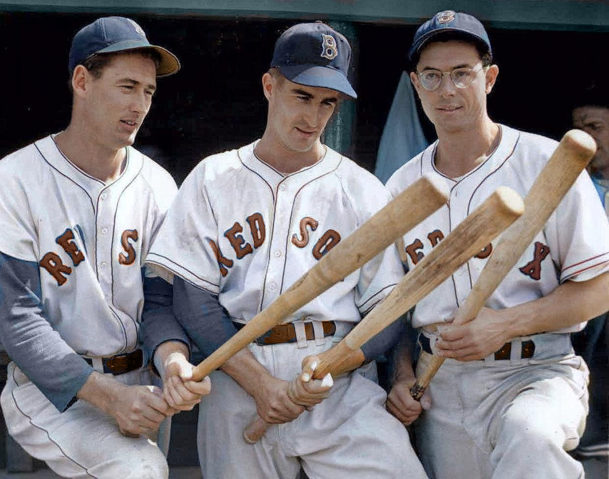 Down three runs, Pesky's first hit and a Williams double, that barely missed clearing the left-field fence, gave the Sox one back in the opening inning. Down 4 to 2 the Sox exploded with a five-run fifth inning which sewed up the decision for Ferriss. Metkovich and Pesky singled, and Williams pulled a slow outside curve that fell just to the left of the scoreboard for a double to tie up the game. Bobby Doerr slashed a double to right that brought in Williams and Stephens threw away Rudy York's ground ball that led Doerr come home. Don DiMaggio single rescued York with the fifth run of the inning. In the second game the Browns made it necessary for the Sox to come from behind again, as a scored a run off Joe Dobson in the first inning. Johnny Pesky's double down the left-field line gave the Sox their comeback start as Ted followed with a line drive off pitcher Jack Miller's left knee to put Pesky on third. From there Johnny scored on Rudy York's infield out to tie the game. In the second inning, Hal Wagner dissolved the deadlock with a first pitch homer deep into the right field grandstand extension. The Browns tied up the game in the sixth inning without a hit. A walk, a wild pitch, and an error followed by a long fly ball tied the score. Then Ted Williams open the ninth with a long single, and scooted to second on Bobby Doerr's sacrifice. Rudy York was intentionally passed and DiMaggio's solid smash to center brought the Kid happily home with the winning run. It was back in 1939 when the Red Sox last one 12 straight. When the Yankees score was posted the mob at Fenway Park cheered loudly. The Sox now have a three game lead. |
