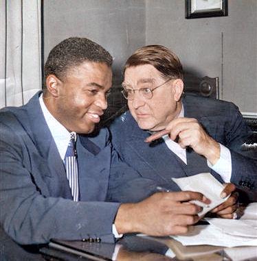 The Dodgers did not lose a moment in taking full advantage. Still, with none out, Reiser drove a double against the right field wall that scored both runners and finished Sain. Reiser later scored on Gene Hermanski’s fly ball off reliever Mort Cooper as the Dodgers won 5-3. Hal Gregg, in relief of starter Joe Hatten, got the win, and Hugh Casey got the first of his league-leading eighteen saves. When the Dodgers took the field in the ninth inning, Robinson remained on the bench as veteran Howie Schultz took over at first base. Schultz was inserted as a defensive measure. (The Dodgers soon realized that Robinson needed no help. Schultz played in only one more game before Brooklyn sold him to the Phillies. Ed Stevens, the team’s other first baseman, played in just five games before he was sent back to the minors. During his first season in the majors, Robinson would encounter racism from opposing teams and fans, as well as some of his own teammates. However, the abuse didn’t affect his performance on the baseball field. Robinson played in 151 games, hit .297, stole more bases than anyone else in the National League and was awarded the first-ever Rookie of the Year title) |