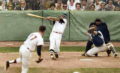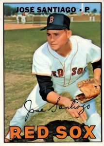 THE CURSE OF THE BAMBINO, PART 6 ... September 30, 1967 ... José Santiago started for the Red Sox and his task was a big one, keeping the Red Sox' hopes alive in the American League pennant race. He did his job, leaving in the eighth-inning with the Red Sox leading 6 to 2. Gary Bell came on and in spite of a mammoth home run in the ninth-inning by Harmon Killebrew, he saved the game for José and the Red Sox, 6 to 4. With 32,909 screaming fans, Santiago had to dig himself out of two bases-loaded situations, right off the bat in the first inning and again in the sixth, when it looked like the Twins were going to end the Red Sox hopes of staying alive. The Twins were first to get on board in the opening frame. Zoilo Versalles led off the game with a single to left. After Santiago got Tovar on the fly ball, he walked Harmon Killebrew. Tony Oliva came up next and drilled a single to center that scored Versalles while Killebrew moved to second. The dangerous Bob Allison followed with another single to left, but Yaz held Killebrew at third while Oliva moved over to second. Santiago wiped his brow and got Rod Carew to line out to Jerry Adair at third, and Ted Uhlaender to hit a hopper down to Mike Andrews at second to end the inning. The Twins were up 1 to 0 and had their hottest pitcher in the month of September working for them, Jim Kaat. After shutting down the Sox for two innings, Kaat felt something pop in his elbow, as he faced Mike Andrews in the third and had to be replaced by Jim Perry. Santiago had to contend with some outfield troubles in the fourth inning. Ted Uhlaender hit a long fly ball to right-field that Ken Harrelson let bounce off his glove, hitting Reggie Smith on the shoulder. Uhlaender made it all the way around to third and there was just one out. But José fanned Jerry Zimmerman and got Perry to fly to Reggie in center. Perry pitched well in relief in the third and fourth innings, but in the fifth, the good luck the Red Sox had been having all year, showed up again. Reggie lined a double to left-center and Dick Williams went to the bench, sending Dalton Jones in to pitch hit for Russ Gibson. Jones hit the weakest kind of ground ball down to Rod Carew at second and just as Carew reached down for it, the ball took a crazy bounce and hit him on the shoulder. Jones ended up on first with a base hit, while Reggie legged it out to third. Perry struck out Santiago and Andrews and the next batter was Jerry Adair. He flicked a small piece of the ball out to right center for a base hit, allowing Smith to score the tying run. With Jones at third, Yastrzemski came up and slammed a ground ball to the right of Killebrew at first. Killebrew missed it, but Rod Carew got to it and Perry was still standing on the mound, instead of covering first. Jones scored, Adair went to second and Yaz had a base hit and his league leading, 119th RBI the season. The Sox were given a gift and were winning 2 to 1. But the joy was short-lived, because in the sixth inning after a walk to Allison and a strikeout by Rod Carew, Santiago allowed Uhlaender to single to left. Rich Reese was sent up to pinch-hit for Zimmerman and also lined a single to left, that scored Allison with the tying run. Santiago walked pinch-hitter Frank Kostro, who batted for Perry, and the bases were loaded. But he got Versalles to hit a weak pop-up that Adair pulled in for the final out in a now, tie ballgame. In the bottom of the sixth, Minnesota brought in Ron Kline to pitch and the first batter he faced was George Scott. Scott hit his first pitch, a low fastball, five rows up into the centerfield bleachers and the mob in the dugout almost tore his shirt off after he crossed home. That was mild compared to the excitement that came the seventh. With one out Mike Andrews checked his swing and beat it out for an infield hit. Adair then hit what should've been an easy doubleplay ball back to the mound. Kline threw to second in time, but Versalles dropped the throw and everybody was safe.