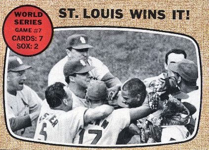 There was movement in the Red Sox bullpen in the sixth when Tim McCarver led off the inning with a double. Mike Shannon hit a hard one hopper down to Joe Foy at third, that handcuffed him and went for an error. Javier was next to come to bat and with a 1-2 count, he hit a deep fly ball into the left-field net for a three run homer. When Lonborg walked off the mound for the last time, tears were running down his face. The capacity crowd stood and gave their fallen hero a standing ovation. José Santiago pitched the seventh and eighth innings in fine fashion, but in the ninth Dave Morehead was on the mound. After striking out Gibson, he walked Brock. Brock stole second and Morehead issued two more walks to Flood and Maris, bringing on Dan Osinski. Osinski got Cepeda on a pop fly and Ken Brett came in to face McCarver, who grounded out. That brought some mild applause from the Red Sox faithful. But the real noise started when Yastrzemski came to bat in the ninth. The 35,188 fans showed no disgruntlement and Yaz received a standing ovation for everything he had done all season. He responded with a base hit to right-field. But Ken Harrelson and Yaz were erased on a doubleplay and George Scott went down swinging to end the Red Sox dream. The loss of the game may be pinned on Dick Williams for not going to his bullpen soon enough, but the loss is better pinned on circumstance, the hard pennant drive, and the lack of rest for Lonborg down the stretch.  |