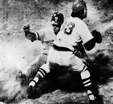 on three consecutive hits, in the sixth inning. Lenny Randle singled
