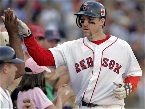 BAMBINO, PART 11 ... May 15, 2003 ... The Red Sox reminded the baseball world what a difference a year can make as Pedro Martinez and his pals whipsawed the Rangers, 12-3, before an emotionally charged 33,801 as the Sox improved to 14-4 at Fenway Park and matched the Royals for the best home record in the game. With Martinez masterly as usual despite a sore groin, the Sox completed a three-game sweep of the Rangers and provided further evidence that the Fens can be friendly after all to Grady Little's traveling band. Last year, the Sox were a subpar 42-39 at home, a major reason they failed to reach the postseason Martinez, in his final tuneup before he faces the Yankees Tuesday, blanked the Rangers on five hits over six innings as he improved to 4-2 with a 2.83 ERA. He struck out eight and allowed only one runner to reach third base as he stymied Texas at every turn. For Martinez's labors, the Sox rewarded him with a lead so mammoth it was virtually bullpen-proof. Every starter either scored or knocked in a run as Nomar Garciaparra paced the attack by driving in three runs with a triple and a double in extending his hitting streak to 16 games. Bill Mueller, who also tripled and doubled, knocked in two runs, as did David Ortiz and Varitek. The Sox led, 10-0, after the sixth inning. The lead was safe enough that Jason Shiell, who started the seventh, escaped the crowd's wrath after coughing up three runs, including solo homers by Todd Greene and Carl Everett, before Bruce Chen finished things off in the ninth. The crowd turned instead on Everett, ridiculing him with chants of "Everett! Everett!," and hurling at least two balls and a third unidentified object at the right fielder, prompting Texas manager Buck Showalter to rush from the dugout in the seventh inning to try to ensure his safety. One of the balls apparently was the home run Everett hit to right field. Everett was lifted after the inning, to spare him from further danger, though both managers ran out subs for some of their stars amid the blowout. The Sox, who matched their season highs with 12 runs and 16 hits, began the beating with Garciaparra's two-run triple in the third inning, then piled on with five more runs in the fourth. Putting the game out of reach, the Sox sent 10 batters to the plate in the fourth as they started off by chasing Texas starter Alan Benes on four straight hits: singles by Ortiz, Kevin Millar, and Trot Nixon that produced one run, and a two-run triple into the right-field corner by Mueller that gave the Sox a 5-0 edge. With Todd Van Poppel in for Benes, Varitek kept things rolling by singling to right to make it 6-0. And Manny Ramirez topped it off by singling home Varitek to stake Martinez to the 7-0 lead. So they scored three more in the sixth. Ortiz's two-run single and Garciaparra's run-scoring double were the key blows, though Damon doubled and Walker singled to set the table. Martinez sent the Rangers early notice he planned a punishing night for them as he mowed down the first two batters, Everett, who was batting .326, and Hank Blalock, who was leading the league at .378, on strikes. He walked the next batter, Alex Rodriguez, but immediately rendered that irrelevant by getting Rafael Palmeiro to tap his next pitch back to the mound on a checked swing to end the inning. Similar scenarios unfolded as Martinez repeatedly found ways to thwart the Rangers when they reached base. The force of Martinez's performance went far in easing concerns about any lingering effects of his groin injury, which he suffered Friday in Minnesota. He pitched in generally unwelcome conditions, since the temperature was 50 degrees at game time and appeared to drop. The crowd of 33,801 was only the second sellout of the season and the first since Patriots Day. Nomar Garciaparra, who extended his hitting streak to 16 games, tied Harry Hooper for 13th place on the club's all-time list with his 246th career double. Billy Goodman is 12th with 248. Garciaparra's triple was his fourth of the season, one shy of his total last year. The triple also was his third in May, marking the third time in his career he has tripled three or more times in a month. |