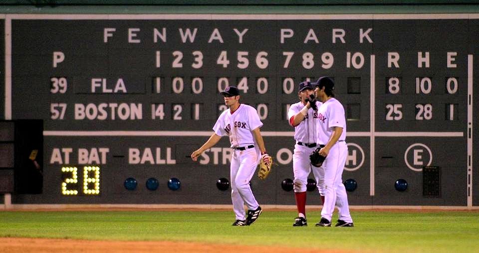 BAMBINO, PART 11 ... June 27, 2003 ... The Florida Marlins could have used a touch of kindness, if not a whole lot of pity, as the Red Sox ran roughshod over them in a record-shattering siege in which Grady Little's marauders set a major league standard by scoring 10 runs before they made an out en route to a 25-8 drubbing before a dizzied 34,764 at Fenway Park. In the process, they so angered the Marlins that a couple of purpose pitches were tossed, leading to a benches-clearing showdown in the ninth inning. Before their 50-minute first turn at bat ended, the Sox tied the American League record for runs in the first inning (14) as Johnny Damon fell a home run short of the cycle in matching a major league mark with three hits in the frame. The Sox sent 19 batters to the plate, forced three Marlins pitchers to fire 91 pitches, and set the stage for an extended evening of misery for the team that cast aside Kevin Millar like a spoiled fish. Gutting Marlins starter Carl Pavano and two relievers, the Sox banged out 13 hits in the first inning on their way to matching the 53-year-old franchise record of 28 hits in a game. Their 25 runs were the second most in club history. The record dates to a 29-4 rout of the St. Louis Browns June 8, 1950, the only other time a Sox team recorded 28 hits in a game. Amid the 4-hour-8-minute romp, Bill Mueller slugged a two-run homer on the way to knocking in a career-high six runs. Jason Varitek drove in four runs, while Manny Ramirez slugged a three-run homer and David Ortiz (three RBIs) socked a two-run shot as he joined Mueller in falling a triple shy of the cycle. The game took a disturbing turn in the bottom of the seventh when Todd Walker's line drive struck Florida pitcher Kevin Olsen behind the right ear, knocking him to the ground, where he lay until he was rolled away on a stretcher by a medical team and rushed to the Beth Israel Deaconess Medical Center. He was listed in good condition with minor injuries and was kept overnight for observation. An inning later, Florida reliever Blaine Neal drilled Ortiz in the right knee, prompting plate umpire Mark Carlson to issue warnings to both teams. Ortiz irked the Marlins when he briefly paused to admire his home run in the second inning, which gave the Sox a 16-1 lead. But the Marlins also believed the Sox needlessly ran up the score, particularly when Walker was thrown out trying to score on a fly to shallow center in the seventh inning with the score 21-5. In any case, the Sox responded in the ninth as Hector Almonte unleashed his second pitch of the inning behind Florida's Andy Fox, prompting both benches to empty and the teams to engage in a brief standoff. No blows were thrown, and once calm was restored, Almonte and Little were ejected. Earlier, the mayhem was confined to the base paths as the Sox expended so much energy scoring that Ramirez and Nomar Garciaparra were lifted by the fourth inning and Doug Mirabelli was dispatched in the fifth to make his major league debut at first base. Damon finished with five hits, Mueller and Walker wound up with four, while Millar, Ortiz, and Trot Nixon each strung together three. The remarkable first inning began with the Sox trailing, 1-0, after the Marlins manufactured a run against Sox starter Byung Hyun Kim in their first turn at the plate. Damon started the onslaught by doubling down the first-base line before Walker laced a single to center, tying the score. Harmless enough, it seemed. But not for long. A pitch later, Garciaparra doubled off the Green Monster, sending Walker to third. And Ramirez deposited the next pitch, a hanging breaking ball, onto Lansdowne Street for his 17th homer of the season, a three-run shot that suddenly made it 4-1. Finding no mercy for Florida's embattled starter, Ortiz banged out Boston's fifth straight hit, a double to right, setting the stage for Millar's first official at-bat against the Marlins since they tried to sell him to Japan before the Sox rescued him. Millar's response? A single to center to knock in Ortiz, extending the lead to 5-1 and sending Pavano to the showers. Pavano became the third starter in Marlins history to fail to retire a batter. But his successor, lefthander Michael Tejera, fared no better. The Marlins hoped Tejera could at least get the better of Nixon, who was batting .191 against lefties. Instead, Nixon whistled Tejera's first pitch for a single to right, moving Millar to second. Tejera then walked Mueller, leaving the Sox one hit shy of matching the major league with eight straight hits before they made an out. No sweat. Varitek kept things rolling by grounding a two- run single to center, staking Kim to a 7-1 lead. And Damon, in his second appearance of the inning, topped that by tripling to the right-field corner for two more runs, making it 9-1 as the Sox set an AL record for runs scored before recording an out and tied the National League mark. The record fell moments later when Walker singled for the second time in the inning, allowing Damon to saunter home with the 10th run. That spelled the end for Tejera, who gave way to right-hander Allen Levrault. Lo and behold, Levrault managed to retire a batter, getting Garciaparra to make the first out by popping to Ivan Rodriguez behind the plate. The annihilation continued as Ramirez dropped a checked-swing single into shallow right, sending Walker to third. Levrault loaded the bases by walking Ortiz before Millar drove in his second run of the inning by lifting a sacrifice fly to shallow center, turning it into an 11-1 rout. Levrault aggravated matters by walking Nixon to reload the bases. And Mueller deepened Florida's suffering by lining a two-run double to left-center, extending the margin to 13-1. After Varitek walked, Damon finished it off with his record-tying third hit, a line-drive single to left that drove in Nixon with the 14th run. It might have been 15, but Mueller was cut down at the plate trying to score from second, ending the ex