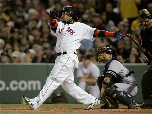 Nomar Garciaparra fanned with two outs and runners on second and third in the third inning. Ramirez grounded out with two outs and the bases loaded in the fifth inning. And the Sox managed only one other serious scoring opportunity, when Walker tripled off Mariano Rivera leading off the eighth inning and scored on Garciaparra's ground out (the shortstop's first RBI of the postseason). The bottom line is the Red Sox have not hit in this postseason. During the regular season, they thumped their way to the highest slugging percentage in baseball history, throwing the 1927 Yankees out of the books. But they feasted on too many toothless Tigers and Devil Rays. You don't see that kind of pitching in October, and Boston's Monster mashers have been neutralized over 10 playoff games, not once scoring more than five runs. Most alarming is the suddenly sick bat of Nomar Garciaparra. Nomar has become "No-hit" and he's killing the Red Sox in the No. 3 spot in the order. Garciaparra slumped badly (.170) in September and it has carried over into the postseason. He struck out swinging at a belt-high fastball with runners on second and third and two outs in the third inning.
