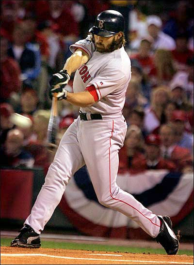 THE "IDIOTS" REVERSE THE CURSE July 17, 2004 ... Tim Wakefield was tormented by Anaheim. Initially by a first inning of bloops and bleeders, then by a fourth-inning liner by Jose Molina that struck him in the back of the right shoulder with such force it caromed and was caught by shortstop Nomar Garciaparra. Wakefield went to his knees after absorbing the blow, then responded with his usual stoic grit, waving off manager Terry Francona and trainer Jim Rowe to remain in the game. An admirable gesture, but ultimately an empty one, as Adam Kennedy hit Wakefield's next pitch into the right-field seats, the last indignity Wakefield endured in an 8-3 loss to the Angels before a sellout crowd of 43,746 in Angel Stadium. Three solo home runs, two by Johnny Damon, the other by Ortiz, accounted for the Sox scoring last night as they lost for the ninth time in their last 11 road games. Only Curt Schilling stands in the path of the Angels moving past the Sox in the wild-card race. Bartolo Colon, who had been a (blimp-sized) shadow of himself for the first three months of the season, his ERA as expanded (6.38) as his belt size coming into the game, won his second straight decision last night, an encouraging development for a team that had counted on him to be its ace. The Sox allowed him to escape early wildness, failing to score even as Colon walked four men in the first two innings. Garciaparra's one-hop bullet to second was converted into an inning-ending double play in the first, and Damon popped to shallow center with the bases loaded in the second. That was just the start of a frustrating evening for Garciaparra, whose leap was not enough to corral Darin Erstad's two-run, bases- loaded floater in the bottom of the first, and who couldn't close his glove on Tim Salmon's soft liner that knocked in a third Angels run in the inning. Salmon was credited with a hit, but it could just as easily have been scored an error. Garciaparra, who had ended the first half batting .487 in July (19 for 39), is 1 for 12 playing in his old neighborhood. He was 0 for 3 yesterday despite hitting the ball hard. For the fourth game in a row, Manny Ramirez got the message to Red Sox manager Terry Francona that he was unable to play the field because of tightness in his hamstrings, which makes it curiouser and curiouser, to borrow a phrase, why he didn't pull himself out of the starting lineup for last Tuesday's All-Star Game.