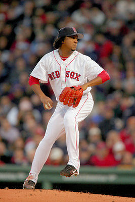 THE "IDIOTS" REVERSE THE CURSE August 28, 2004 ... With Pedro Martinez masterful, the Sox overcame a strong challenge from Detroit starter Jeremy Bonderman and rollicked to a 5-1 victory before 35,032 on the steamiest night of the summer in the Fens. Pedro Martinez led the way to the latest victory as he enhanced his Hall of Fame credentials by climbing into 20th place on the all-time strikeout list (the only pitchers ahead of him who are eligible for the Hall and have yet to reach Cooperstown are Bert Blyleven, Mickey Lolich, and Frank Tanana). Martinez surpassed Chuck Finley, his eight strikeouts lifting his career total to 2,614. Even lacking his best stuff, Martinez limited the Tigers to one run on four hits, two walks, and a pair of hit batsmen over seven innings as he submitted his 19th quality start in 27 outings and improved to 14-5 with a 3.69 ERA. Nasty as ever under pressure, Martinez surrendered only one hit (an RBI double by Craig Monroe) with runners on base and allowed only one Tiger to reach third (Dmitri Young touched the bag before scoring on Monroe's double). Martinez credited Lowe in part for his smooth outing. Never mind that the Sox went a third straight game without a home run for the first time this season. Even with Ramirez idled by a contusion on his left knee, they produced more than enough support for Martinez as Mark Bellhorn led the way with a pair of RBIs. Bellhorn's double in the seventh was the first of three straight run- producing hits as Damon followed with an RBI double and Ortiz with a run-scoring single. Damon, who helped Martinez by gunning down Omar Infante trying to stretch a single leading off the game, had an additional reason to smile as he scored his league-leading 100th run. It marked the seventh straight season Damon has scored 100 or more runs. The three-run seventh for the Sox broke open a 2-1 game after Dave Roberts and Bellhorn each drove in a run in the fifth. Bill Mueller, who went 3 for 3 with a walk in returning from a sore right foot and ankle, scored in each of the rallies. After Martinez's 103-pitch effort, Alan Embree retired the Tigers in order in the eighth and Ramiro Mendoza finished things off by pitching a scoreless ninth. A contusion of Ramirez's left knee was serious enough to force him out of action. Ramirez spent much of the day receiving treatment, as did closer Keith Foulke, who was coping with a stiff back. X-rays on Ramirez Friday were negative, and the medical staff saw no reason to perform additional tests, according to Francona. |