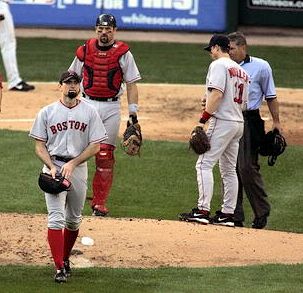 October 4, 2005 ... October baseball is back, and the Sox' title defense is off to a rocky start. Sox pitcher, Matt Clement is a talented righty who has yet to demonstrate that he can pitch well when it matters most. Clement coughed up five runs in the first inning yesterday and overall yielded eight runs in 3 1/3 innings before he was mercifully sent to the showers after surrendering his third homer with one out in the fourth Meanwhile, Chicago righty Jose Contreras held the Red Sox to two runs on eight hits over 7 2/3 innings. A couple of winters ago, Red Sox general manager Theo Epstein lost Contreras in a bidding war with the Yankees, and yesterday Sox fans finally saw what all the fuss was about.