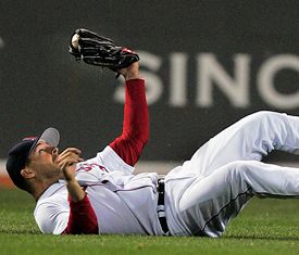 April 18, 2006 ... The Red Sox and Devil Rays are incapable of playing a normal baseball game. In tonight's 7-4 win over the Devils Rays before 36,423 roaring fans at Fenway Park, you had the drama of Adam Stern's diving, game-ending catch in center field with the bases loaded. You had Tampa manager Joe Maddon's unique David Ortiz shift, which featured six players in the outfield and no infielders on the left side, a formation he dreamed up while on the stationary bike. There was Jonathan Papelbon's first tough save, as he struck out two but also walked two in loading the bases. There was the curious decision by Maddon to pitch to Manny Ramirez in the bottom of the seventh with two runners in scoring position and two outs, only to have Ramirez deliver a two-run single that gave Boston a 4-2 lead. There were none of the beanballs or brushbacks that these teams have come to be known for. There was no Tampa Bay retaliation for Joey Gathright being punched in the face by Julian Tavarez in spring training. You also had the fruits of Kevin Youkilis's hard labor this off-season: a two-run, two-out, line-drive double in the eighth inning that broke a 4-4 deadlock. Mike Lowell pounced on Ruddy Lugo's first pitch of the eighth and smacked it high off the wall for a double. After pinch hitter Trot Nixon walked, Chad Orvella got Adam Stern to bunt into a fielder's choice, with Lowell erased at third. Things didn't look good when Alex Gonzalez struck out, but Youkilis saved the day. With the score tied at 2-2 in the seventh, Ramirez's single, a rising line drive, hit off the heel of Russell Branyan's glove. Two runs scored to give the Sox a 4-2 lead, but Mike Timlin couldn't hold that lead in the eighth after relieving Matt Clement, who allowed a leadoff walk to Lee to end his night. Timlin allowed a double to center by Gomes before Branyan doubled to right to tie the score. Give Timlin credit for at least keeping the game tied with Branyan on third and one out. Timlin retired Toby Hall and Tomas Perez to escape the inning at 4-4. The Sox trailed, 2-1, heading into the bottom of the seventh, but tied it on an unusual play. With Wily Mo Pena (walk, sacrifice, wild pitch) on third and Youkilis (walk) on first, Mark Loretta hit a line drive past the second baseman. While Pena scored, Youkilis held up, thinking the ball may be caught. He was cut down on a force play on the throw from right. With two outs, Ortiz smacked his second double off the Monster, sending Loretta to third, and setting up Ramirez for the go-ahead hit. With the game-time temperature 48 and dropping, Clement couldn't have been the easiest guy to face. In fact, the Devil Rays didn't score until the seventh when third baseman Ty Wigginton led off with a home run that just made it over the Green Monster, tying the score at 1. In the same inning, the Rays took the lead on back-to-back doubles by Hall and Perez. As for Papelbon's save (his seventh in seven tries), it certainly started well as he struck out Gathright. Carl Crawford singled up the middle, but the big right-hander struck out Jorge Cantu. Then Travis Lee walked in a 10-pitch at-bat, and Jonny Gomes walked to load the bases. Then came “The Catch”. Stern had made a couple of eye-openers for Team Canada in the World Baseball Classic, but this was one of those all-or-nothing dives as he sped straight in on a sinking liner. |
